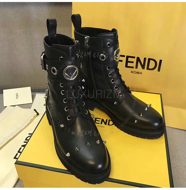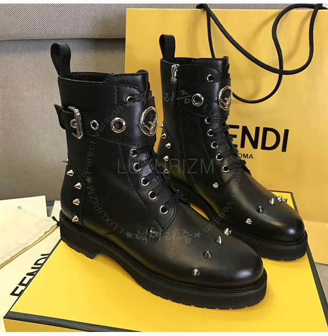 [스페셜오더]FENDI-8T6634 펜디 블랙 카프스킨 바이커 앵클 부츠 여성용