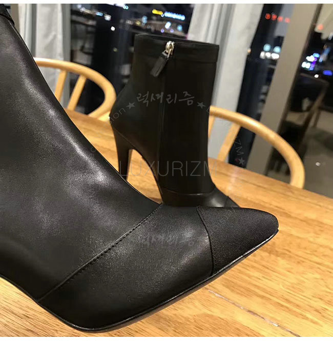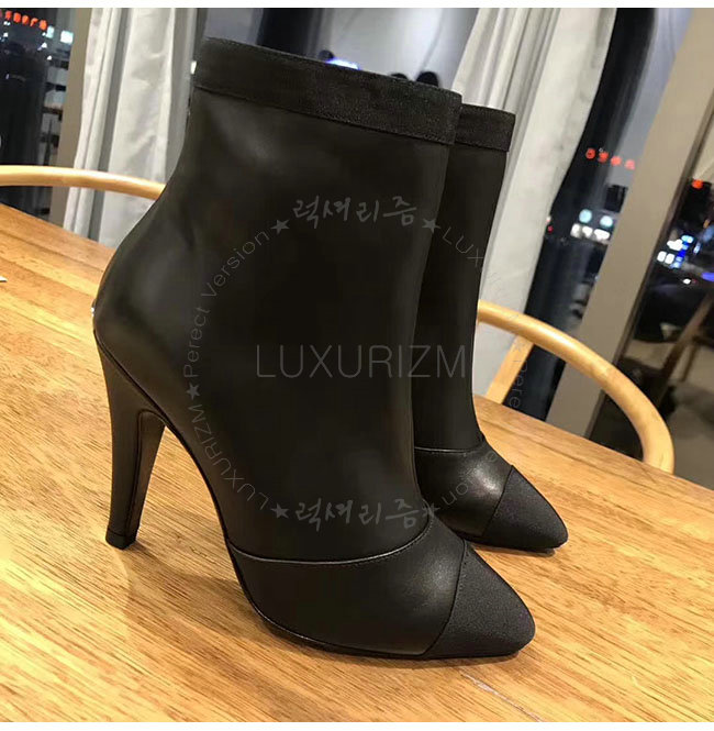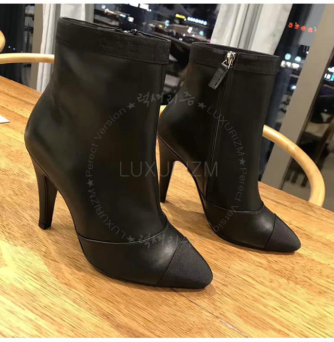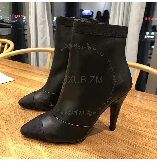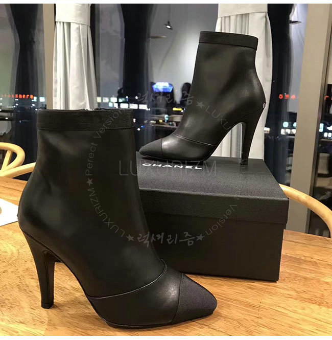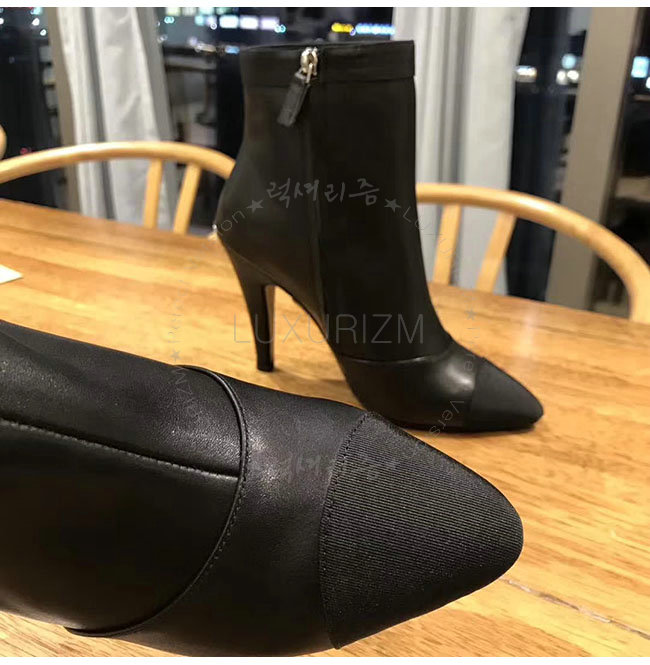 CHANEL-G33115 샤넬 블랙 카프스킨 그로그랭 쇼트 부츠 여성용