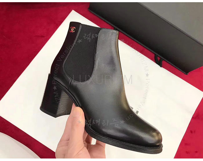 CHANEL-G33353 샤넬 블랙 카프스킨 쇼트 부츠 여성용