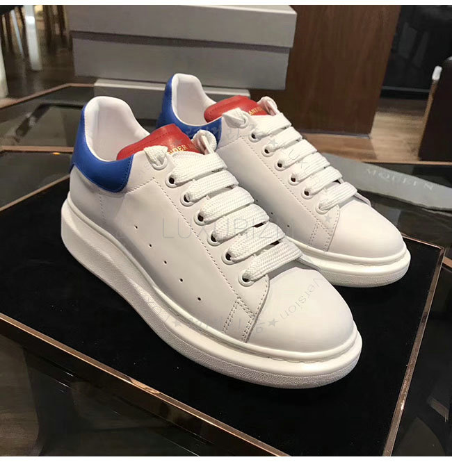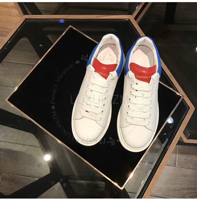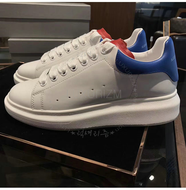 ALEXANDER MCQUEEN-441631 오버솔 화이트 레드 블루 가죽 스니커즈 남성용