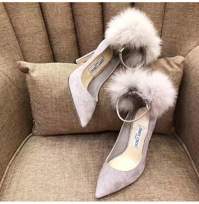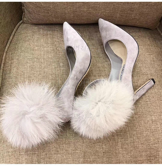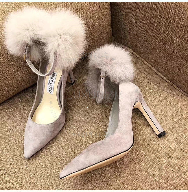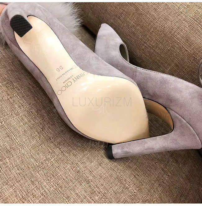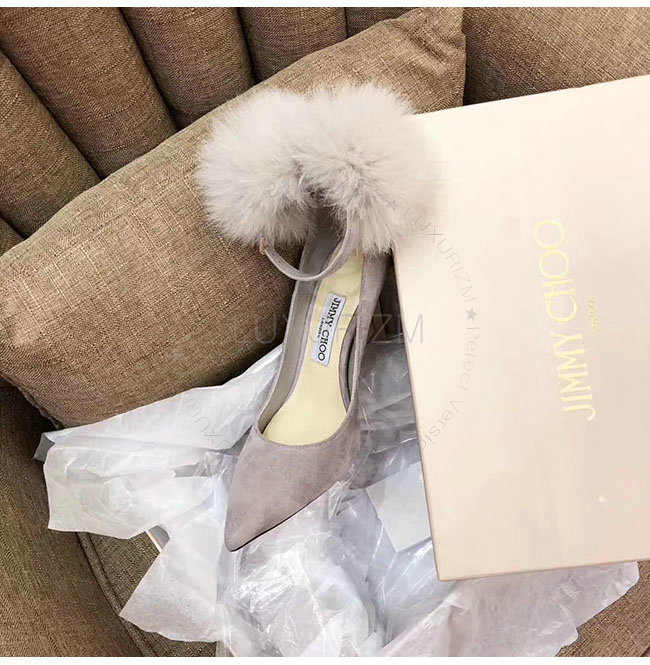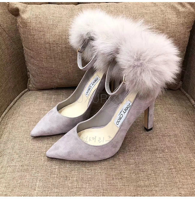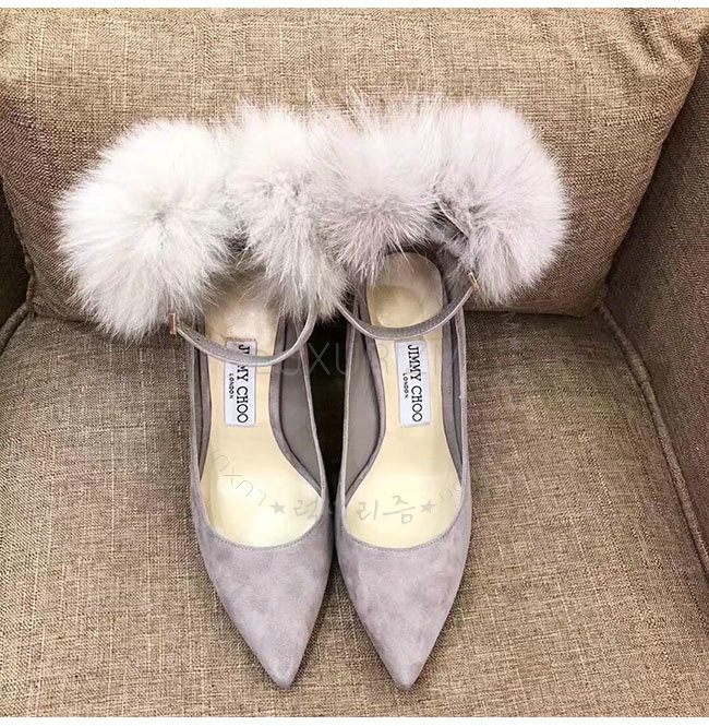 JIMMY CHOO-지미추 몬스턴 스웨이드 여우털 뽈 펌프스 여성용