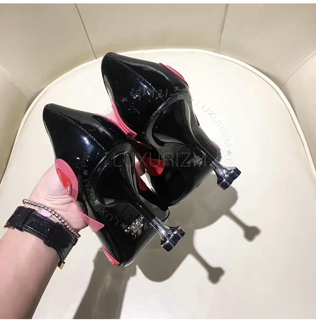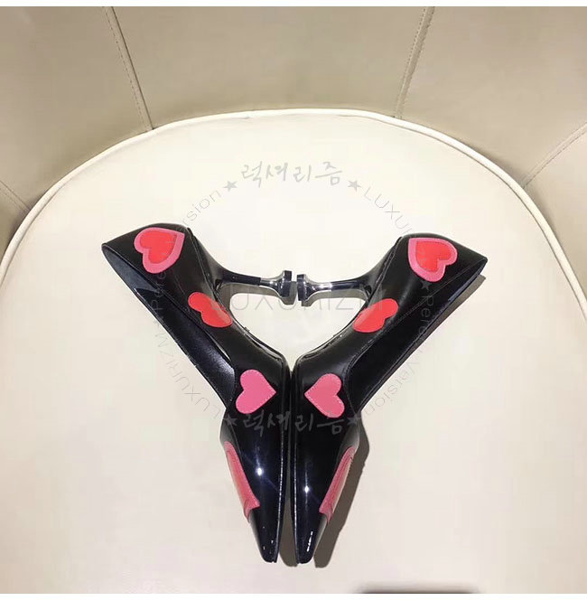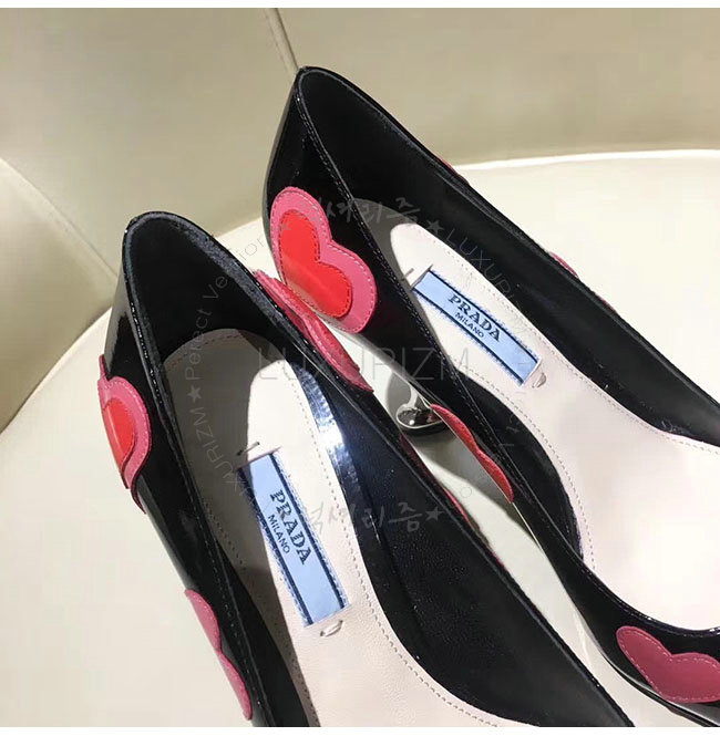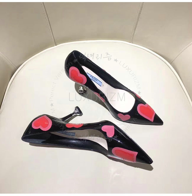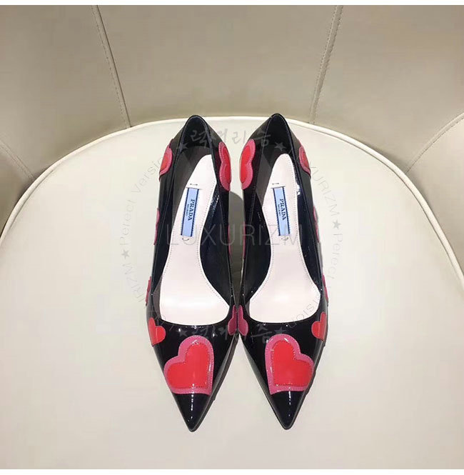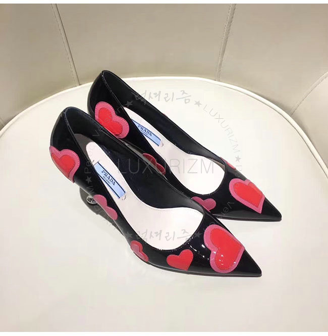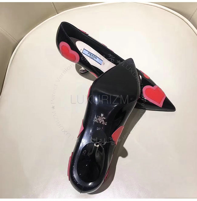 PRADA-2H045B 프라다 블랙 페이턴트 가죽 하트 아플리케 펌프스 여성용
