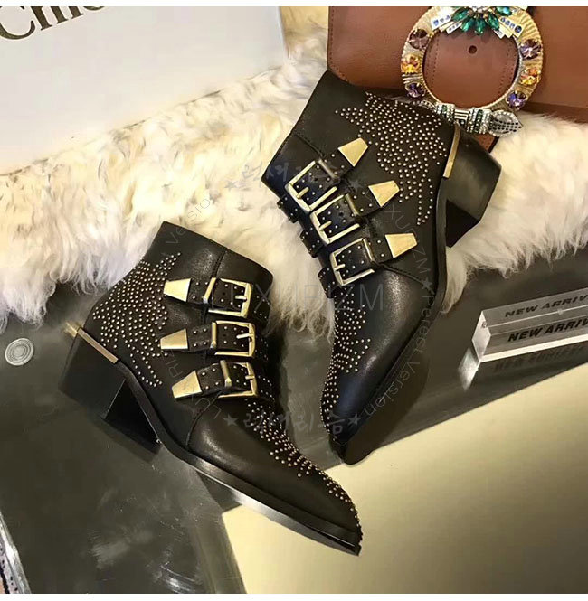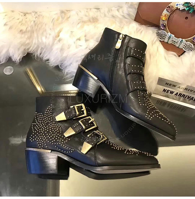 CHLOE-CHC16A 끌로에 수산나 블랙 가죽 앵클 부츠 여성용