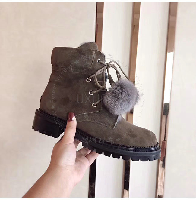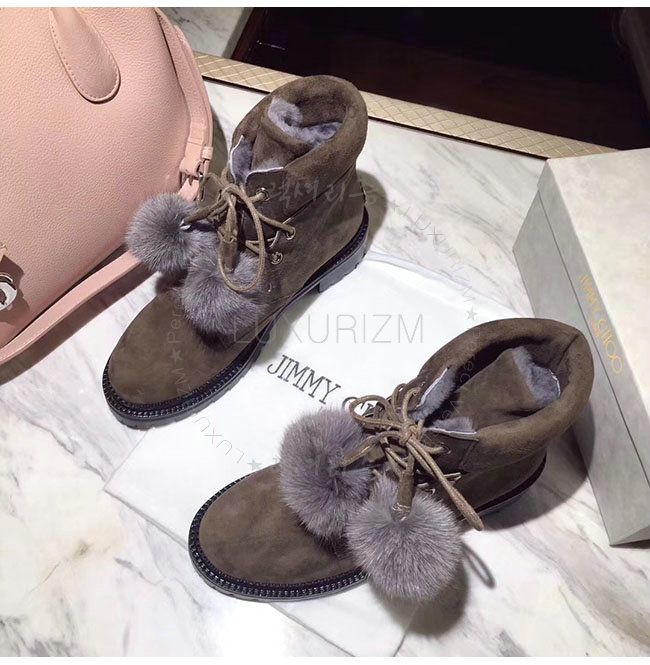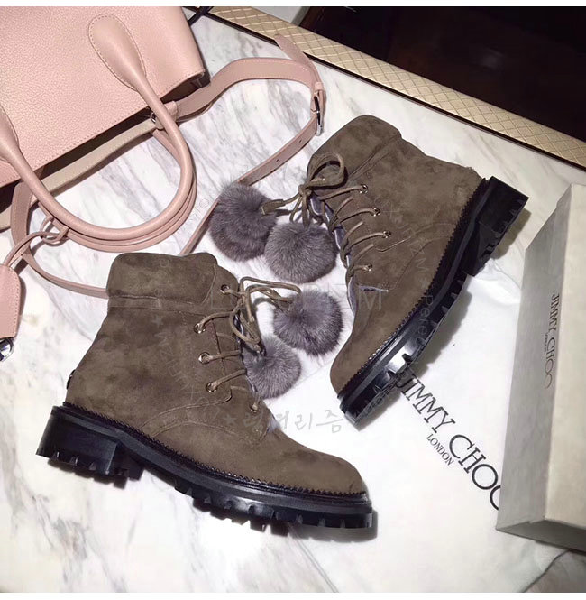 JIMMY CHOO- ELBAFLA 지미추 밍크 스웨이드 가죽 엘바 플랫 앵클 부츠 여성용