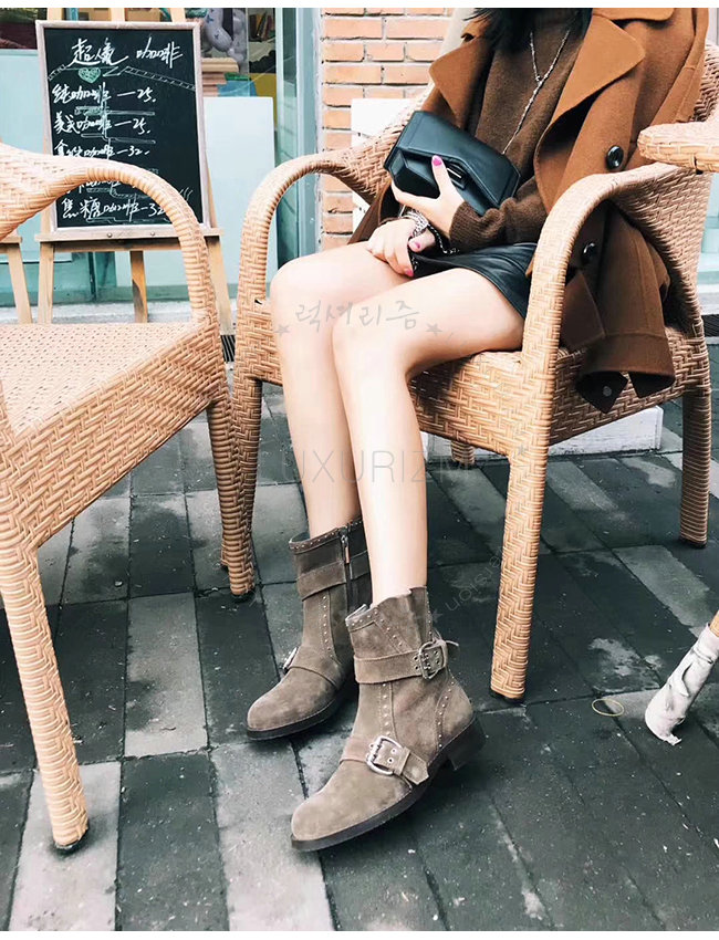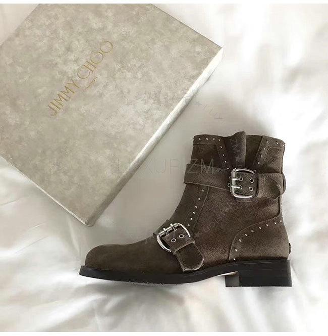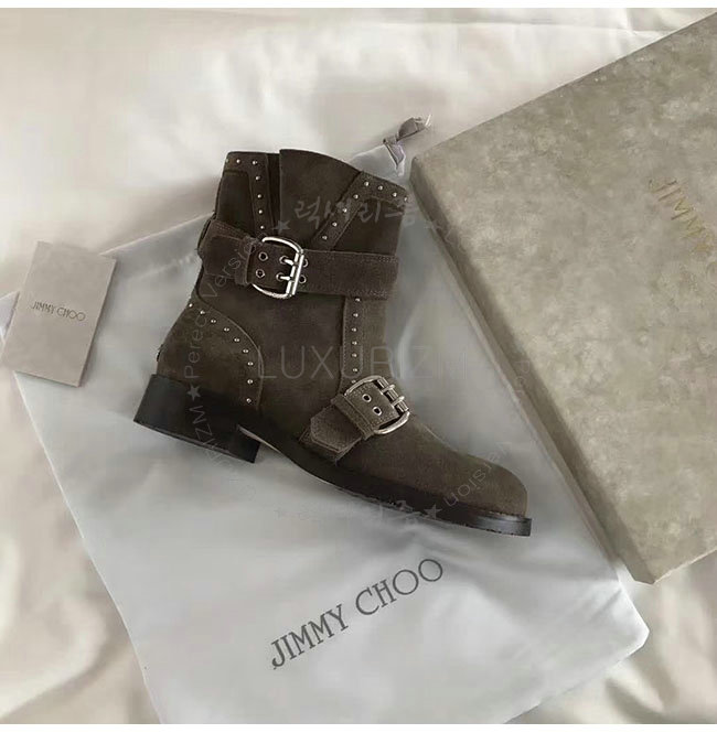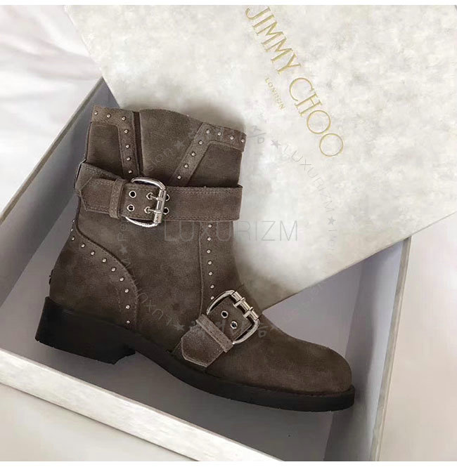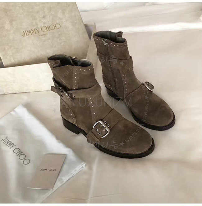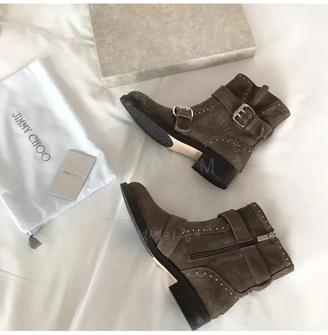 JIMMY CHOO-지미추 BLYSS 밍크 스웨이드 가죽 블리스 바이커 부츠 여성용