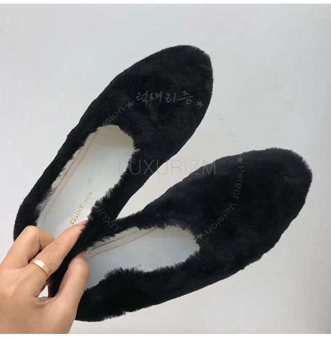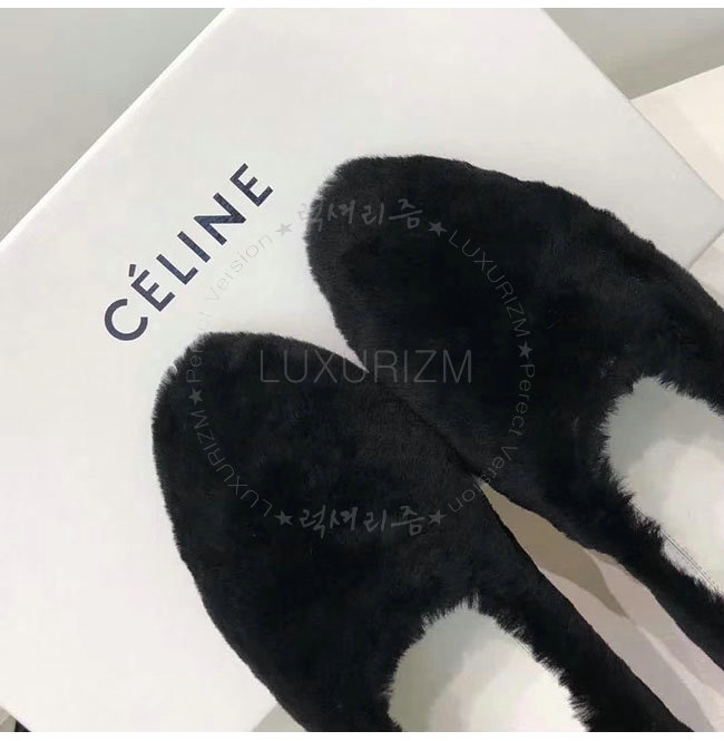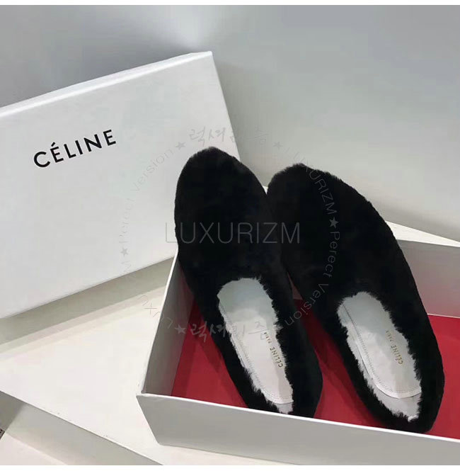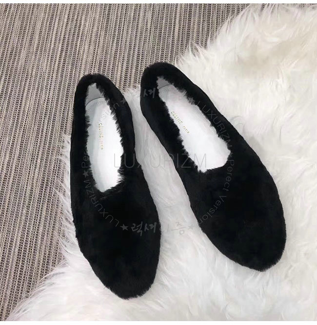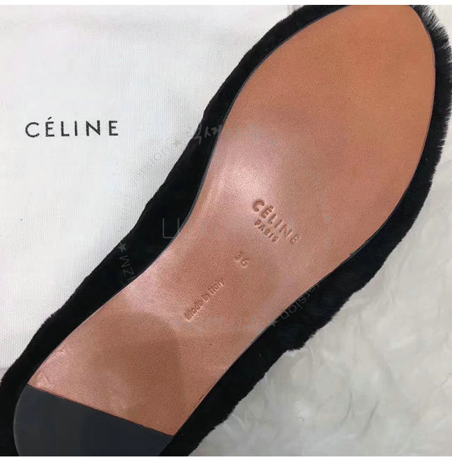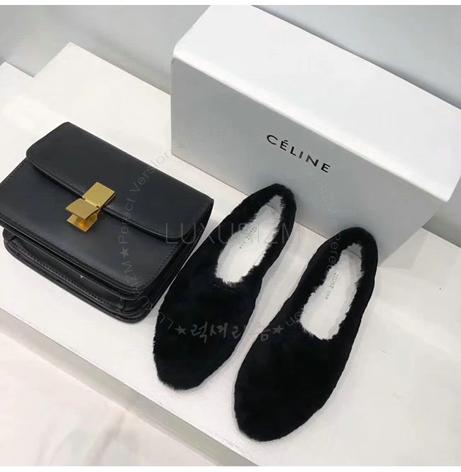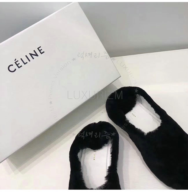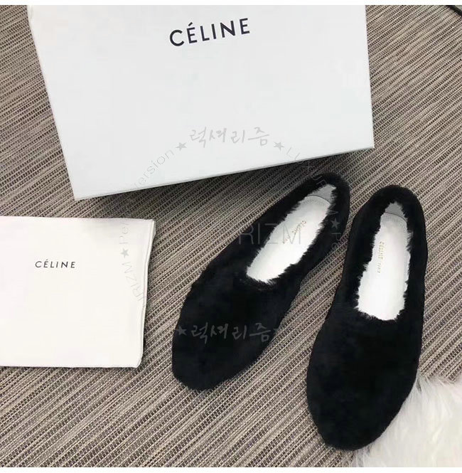 CELINE-325113 셀린느 블랙 시어링 코지 플랫 여성용