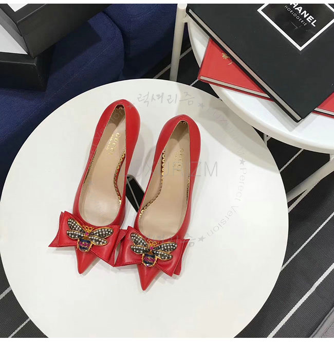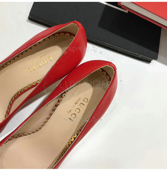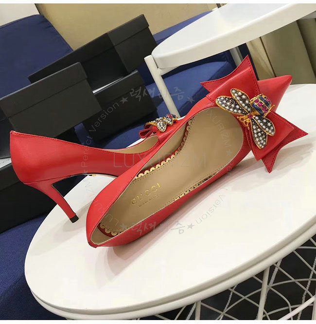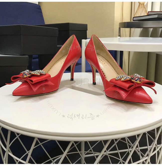 #구찌힐 구찌여성신발 명품힐추천 이미테이션신발쇼핑몰 럭셔리즘 GUCCI-496641 6433 구찌 레드 보우 디테일의 가죽 미드힐 펌프스 여성용