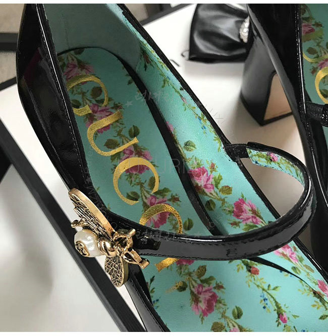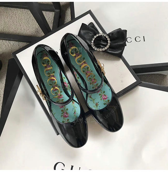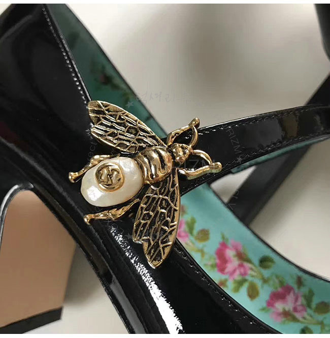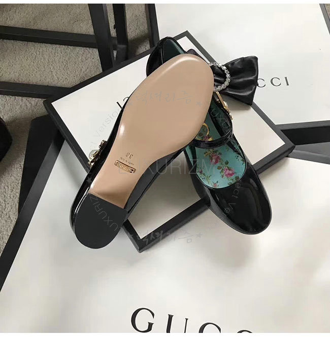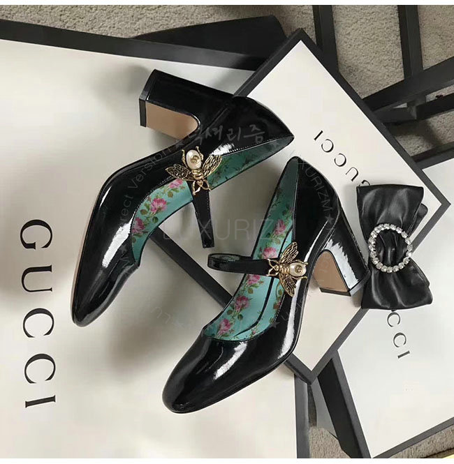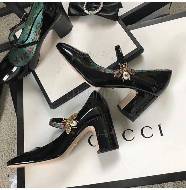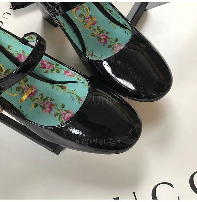 GUCCI-481177 1000 구찌 블랙 페이턴트 가죽 미드 힐 여성용