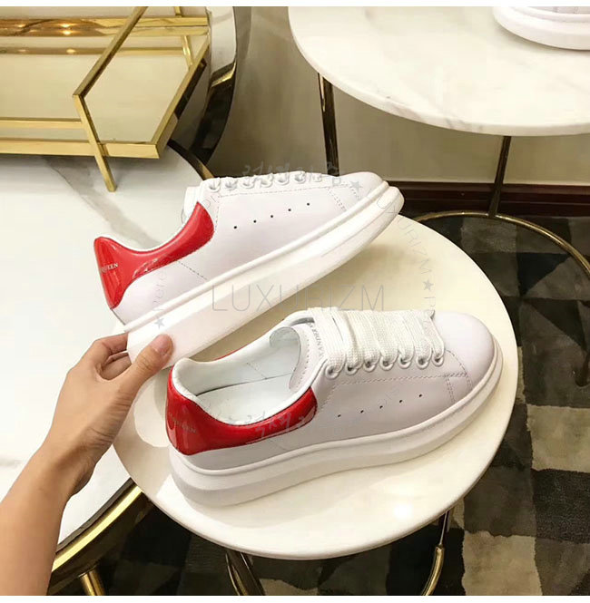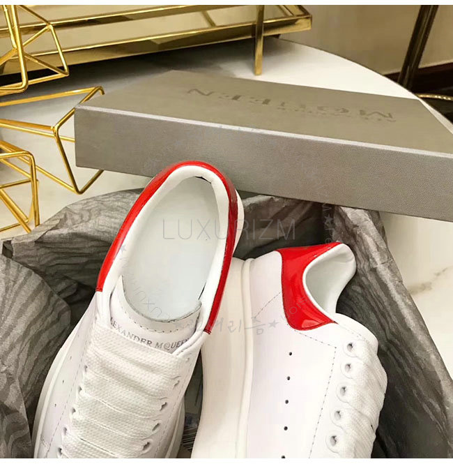 ALEXANDER MCQUEEN-462214 알렉산더 맥퀸 오버솔 화이트 레드 가죽 스니커즈 남녀공용