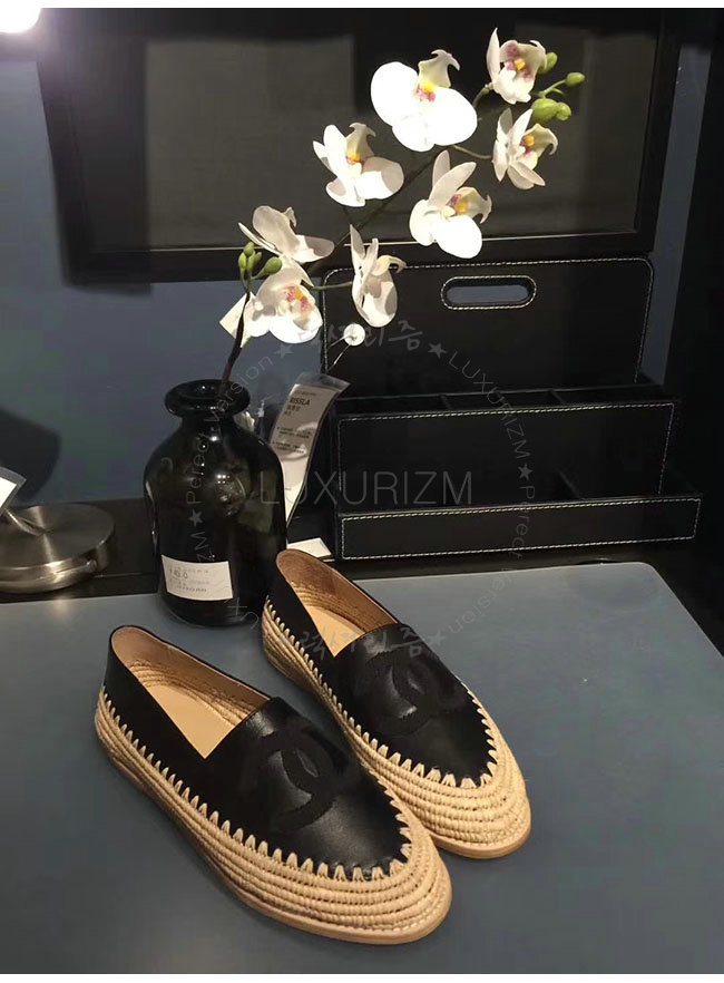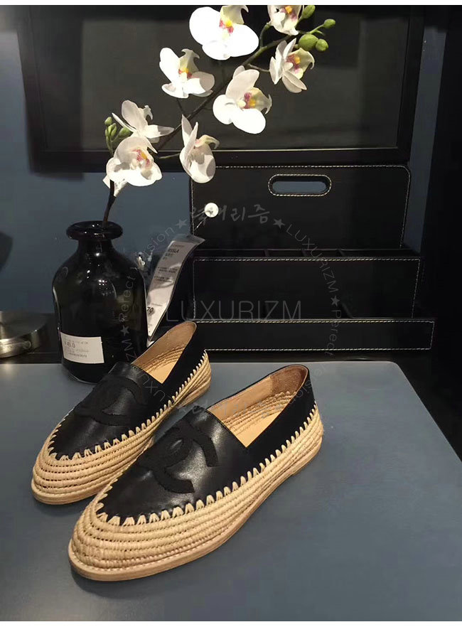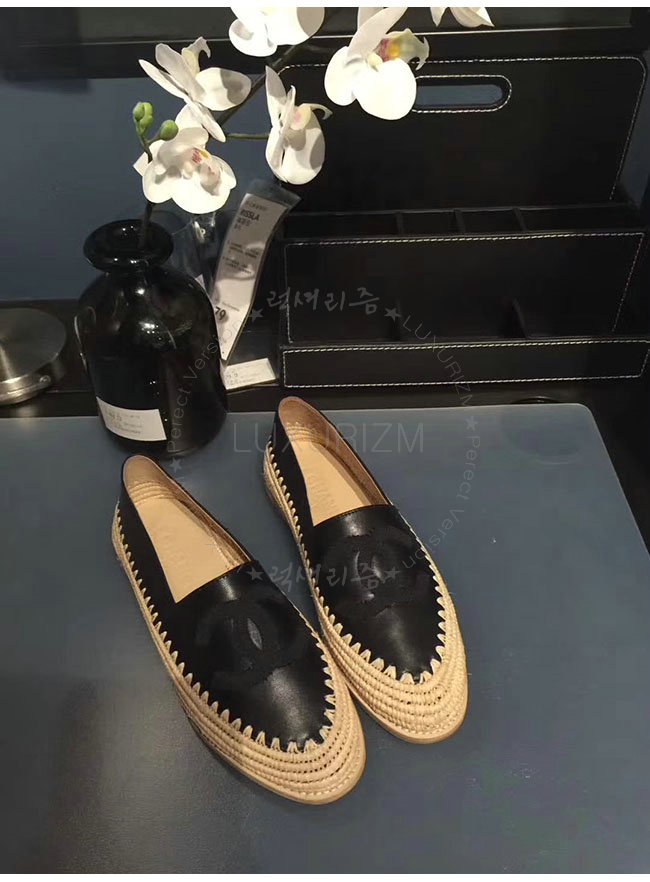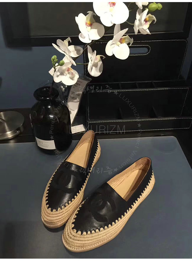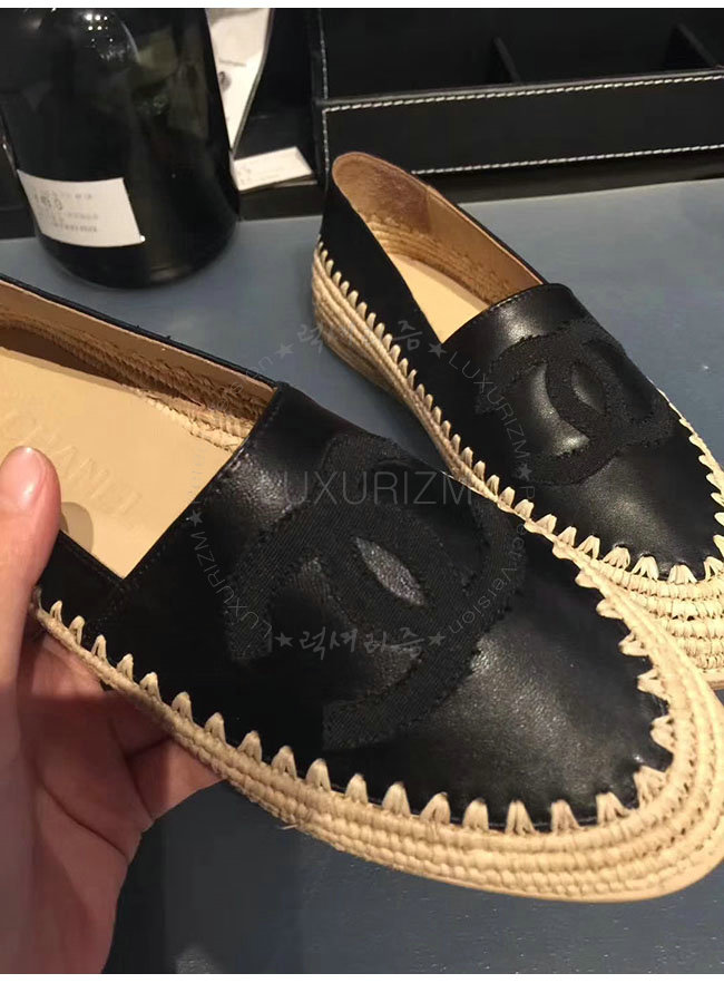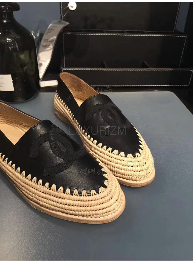 CHANEL-G33559 샤넬 블랙 램스킨 그로그랭 에스파드리유 여성용