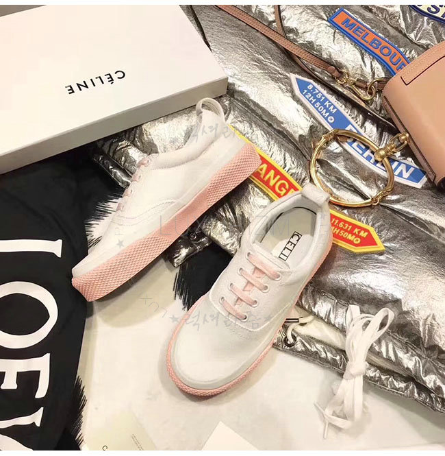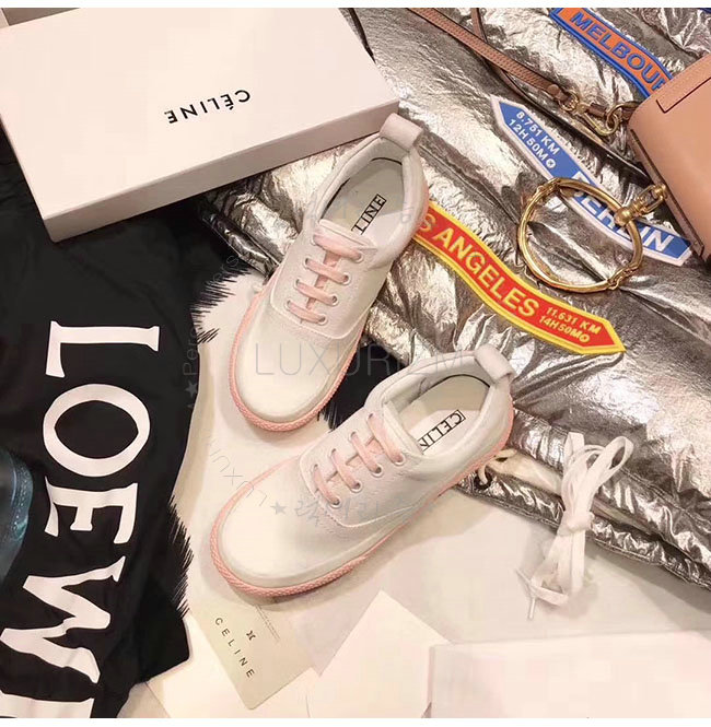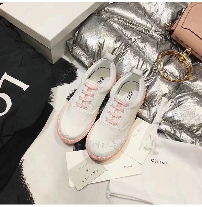 CELINE-323982 셀린느 캔버스 핑크 레이스 업 스니커즈 여성용
