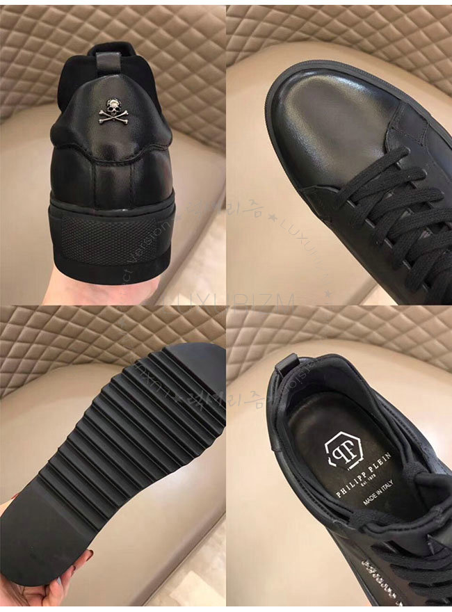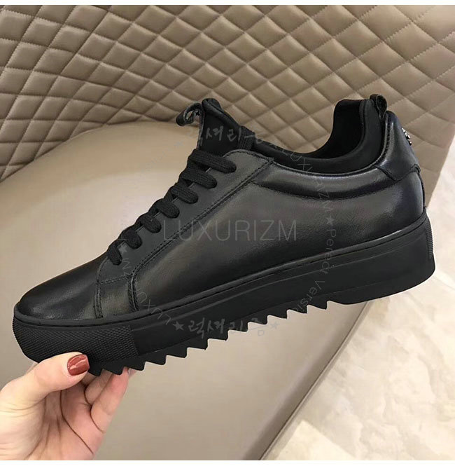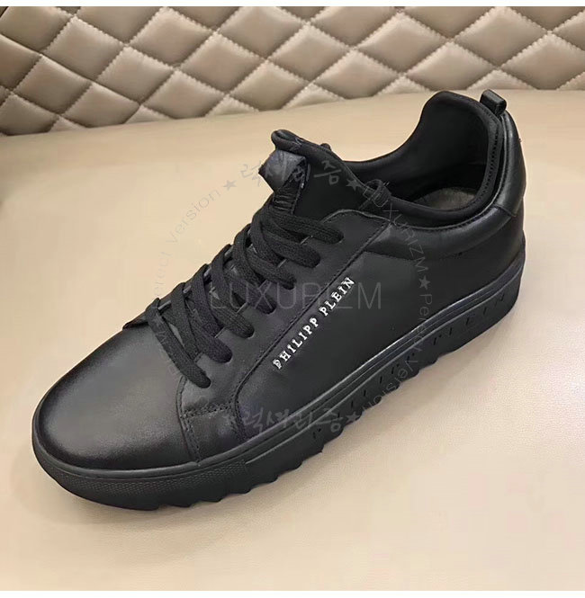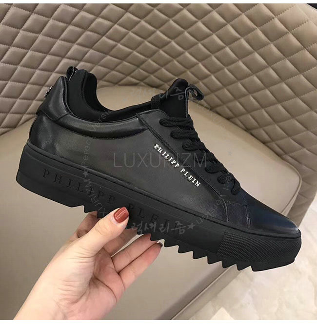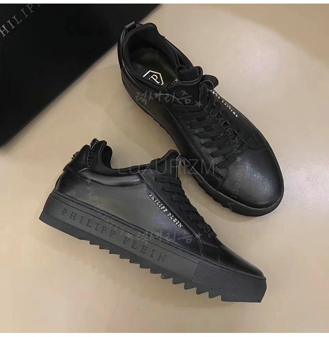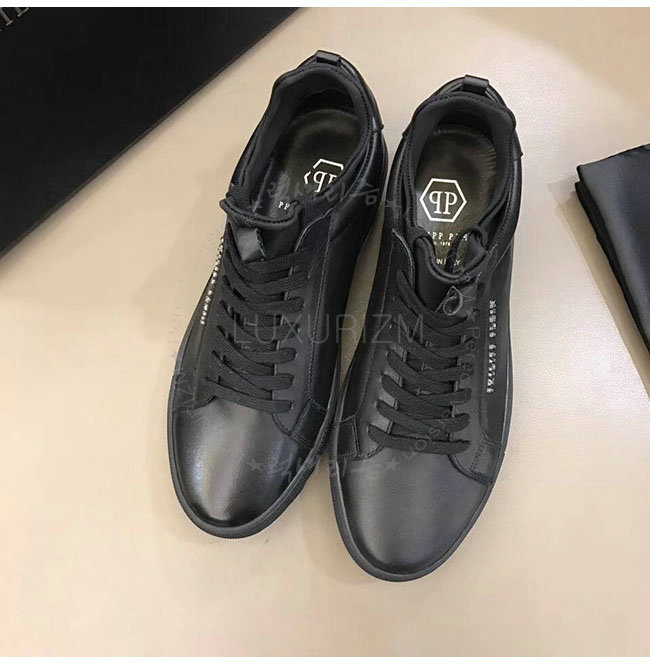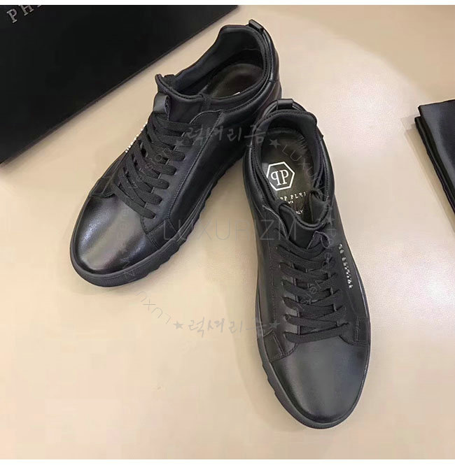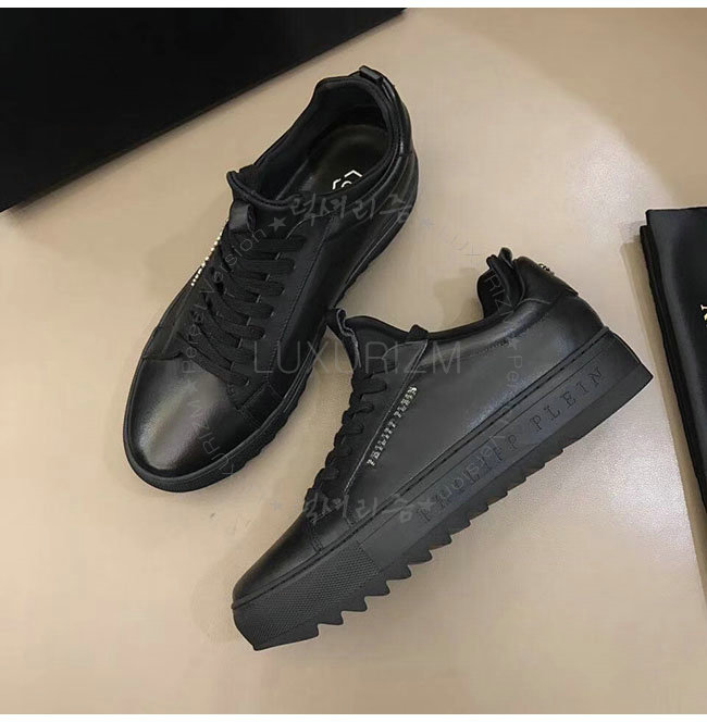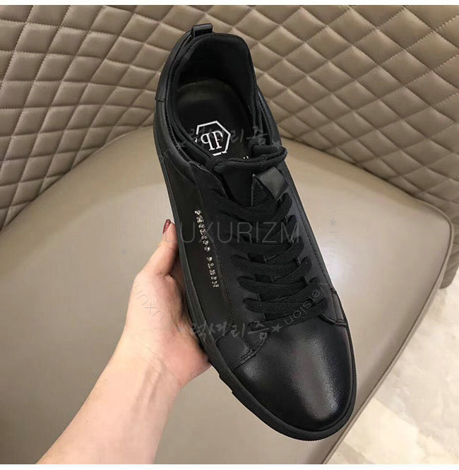 PHILIPP PLEIN-MSC0843 필립 플레인 블랙 카프스킨 존 로우탑 스니커즈 남성용