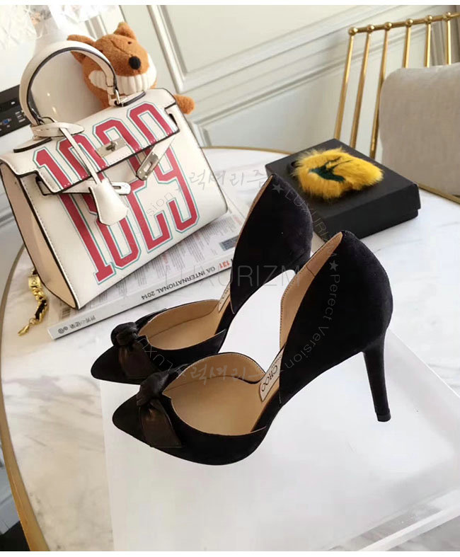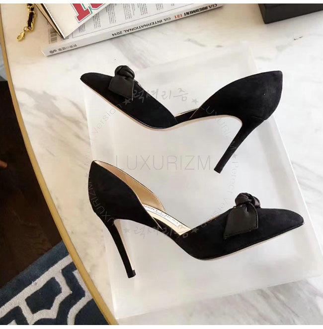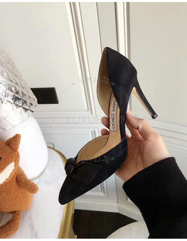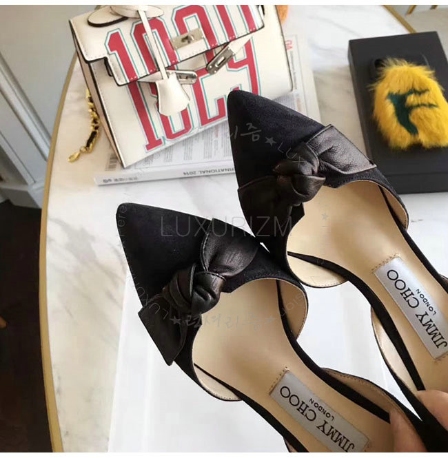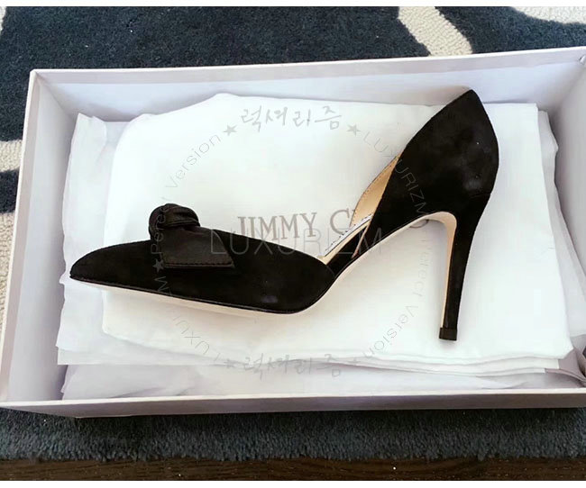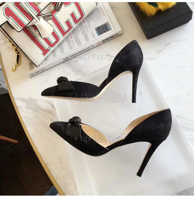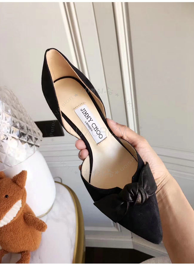 JIMMY CHOO-TWINKLE 지미추 블랙 스웨이드 가죽 트윙클 포인티 토 펌프스 여성용