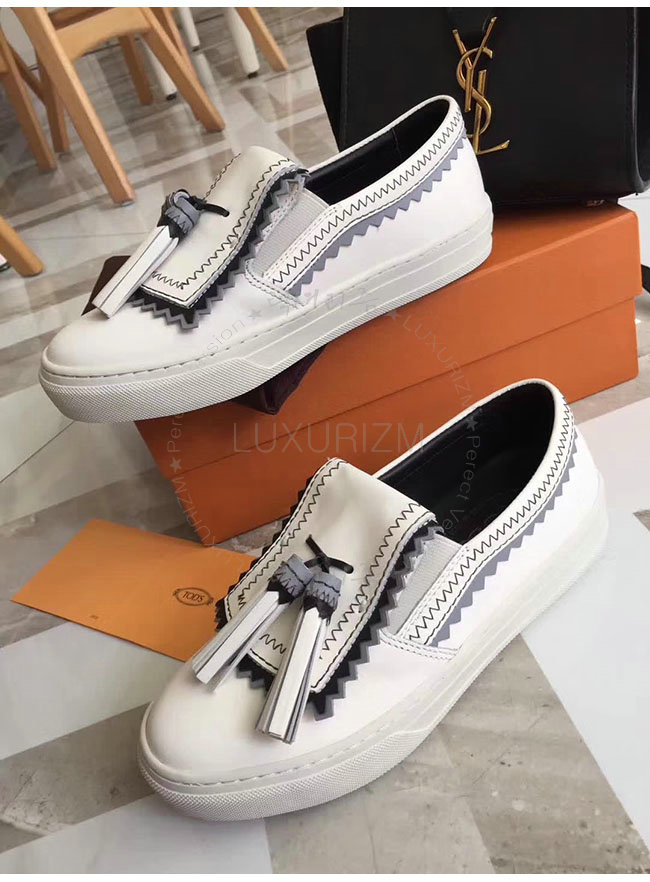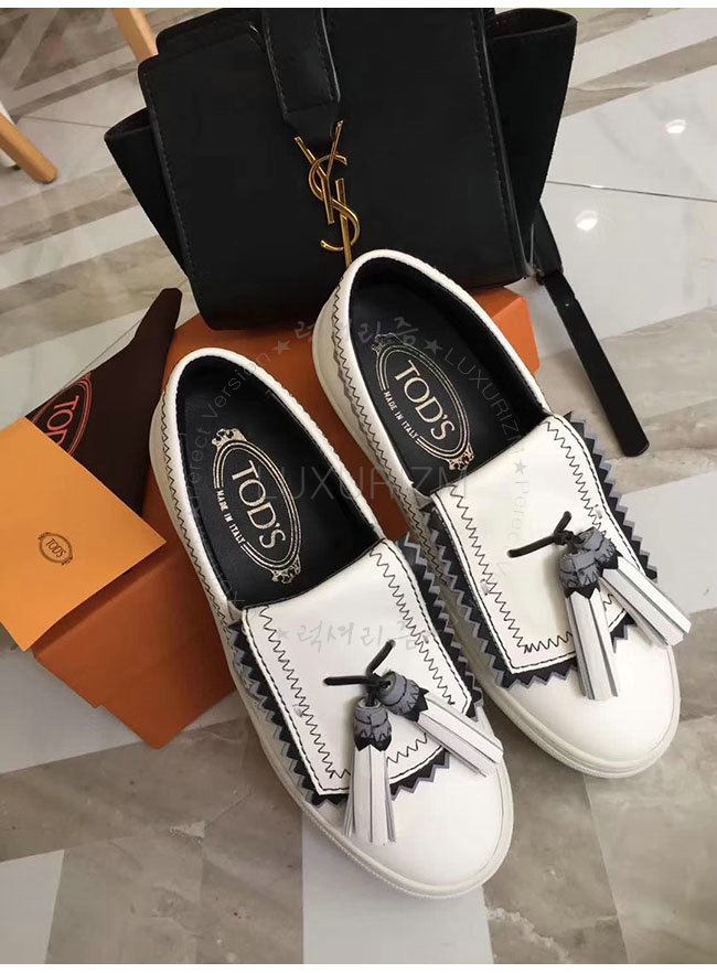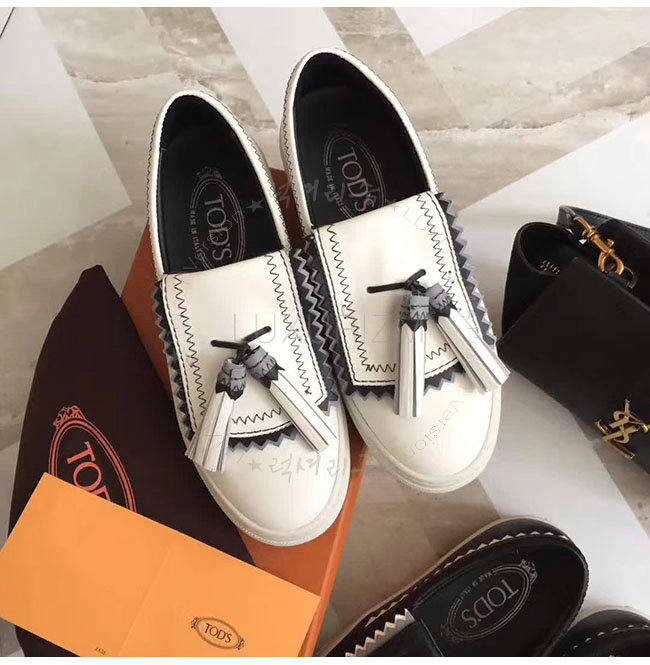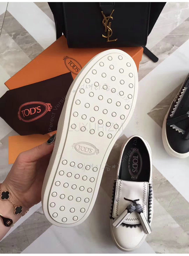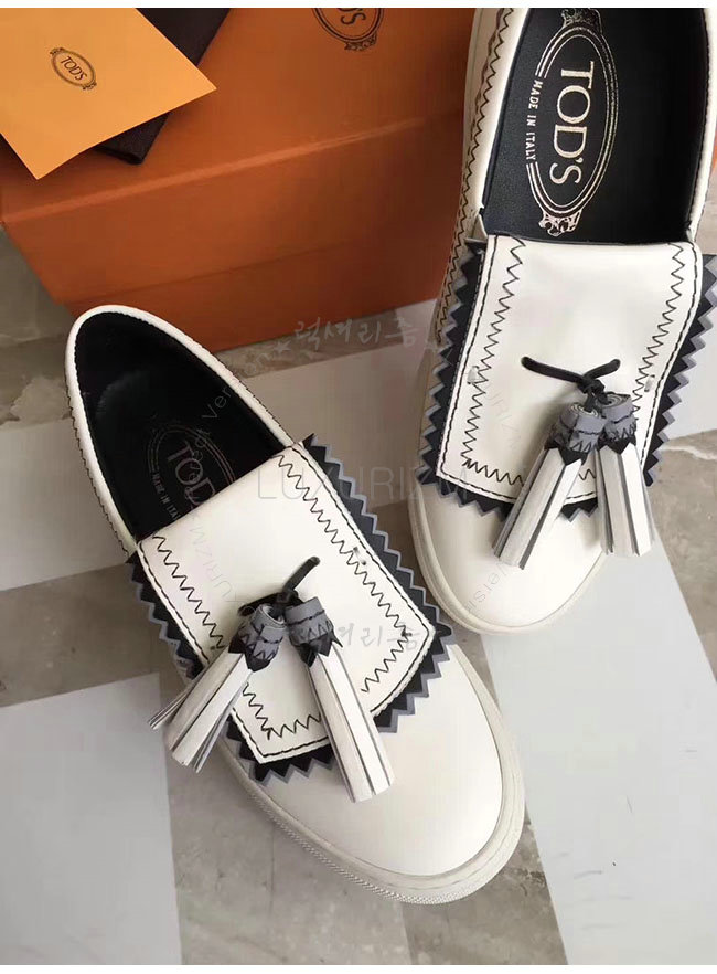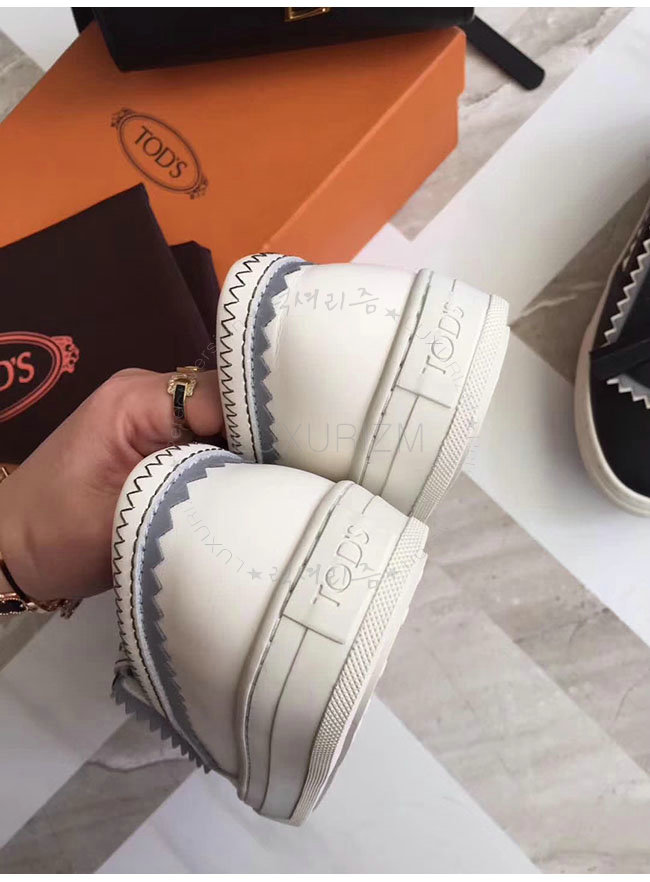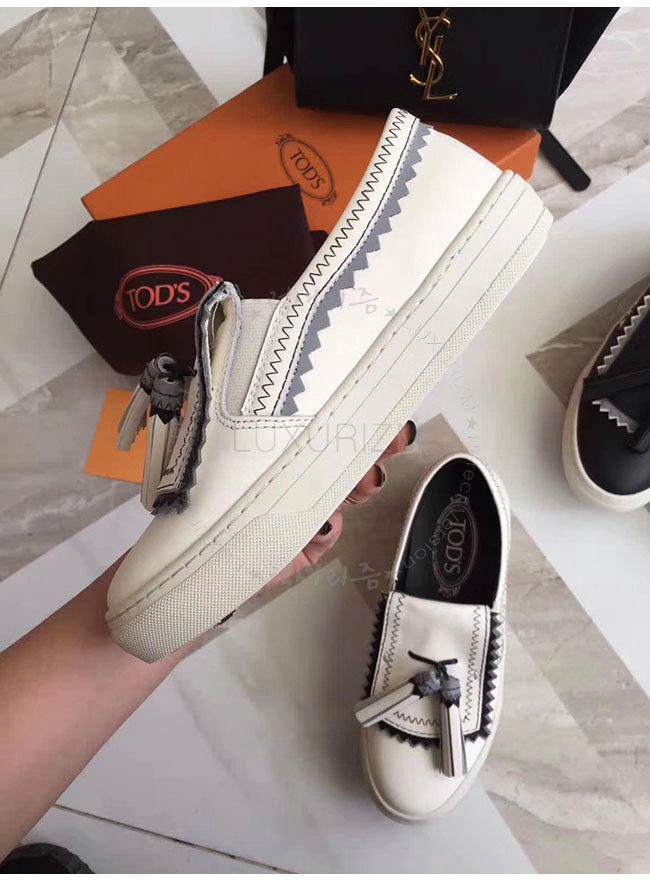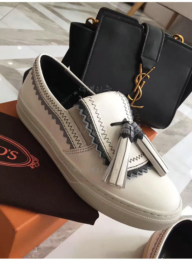 TODS-XK0W320 토즈 화이트 카프스킨 슬립온 스니커즈 여성용