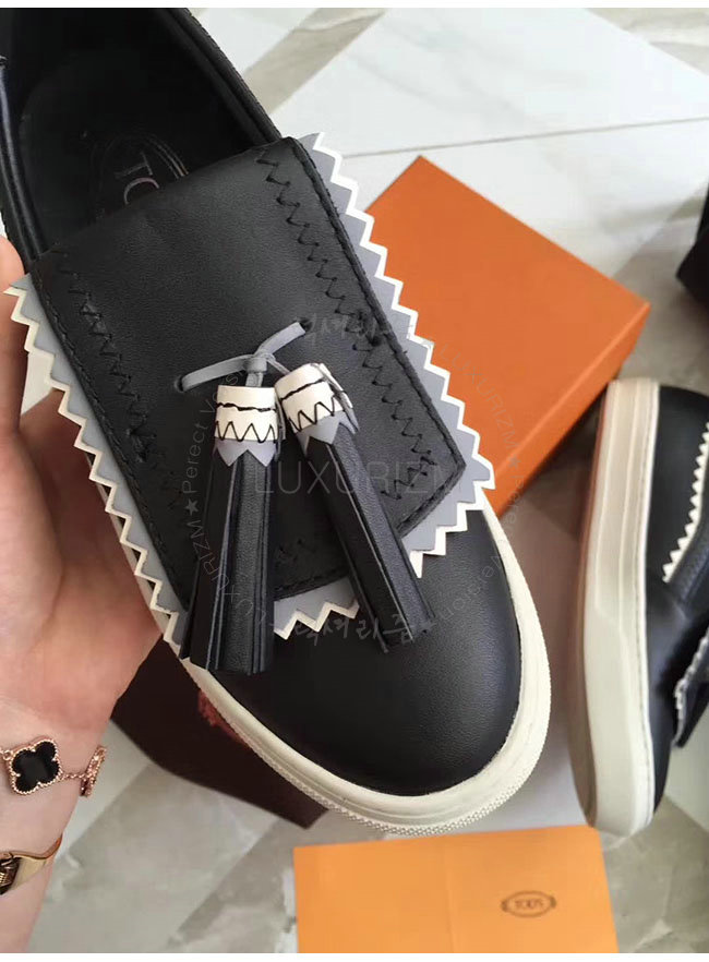 TODS-XK0W320 토즈 블랙 카프스킨 슬립온 스니커즈 여성용