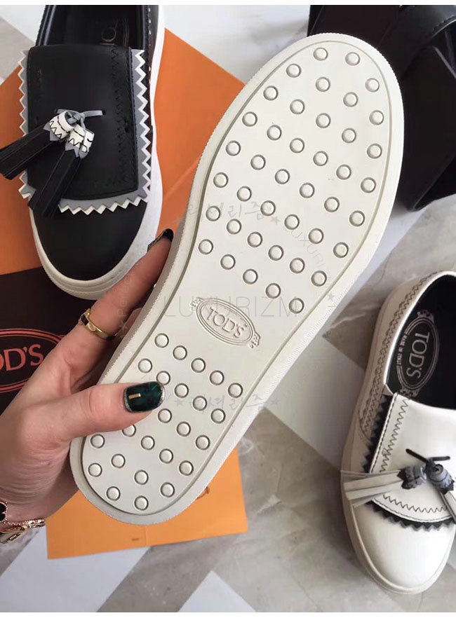 TODS-XK0W320 토즈 화이트 카프스킨 슬립온 스니커즈 여성용