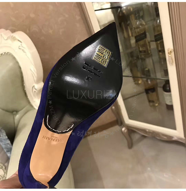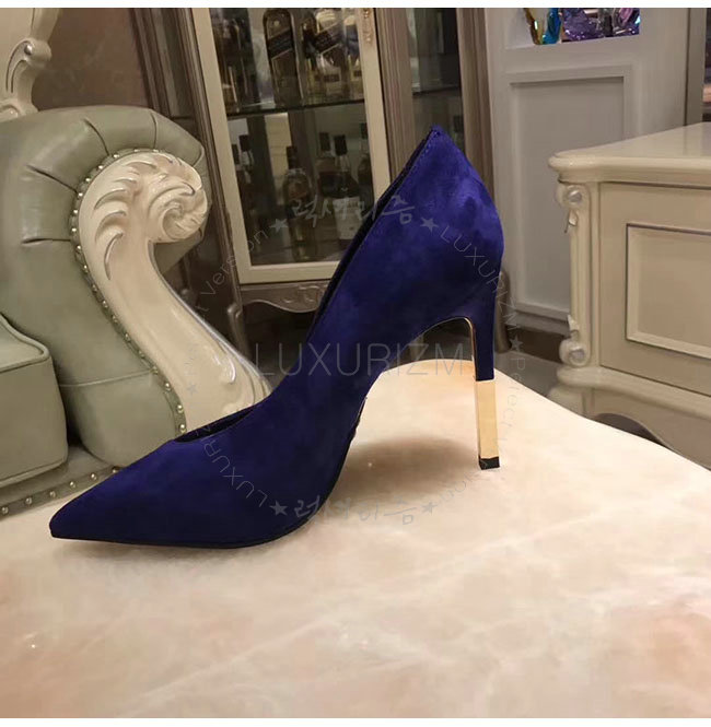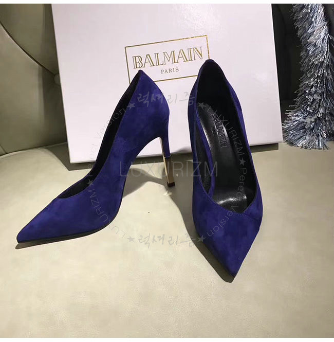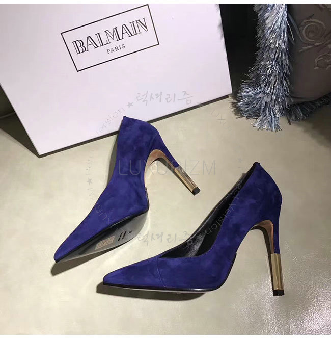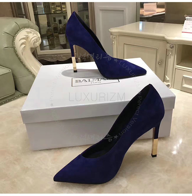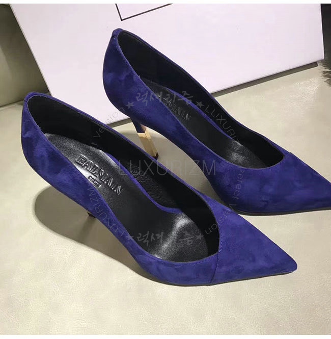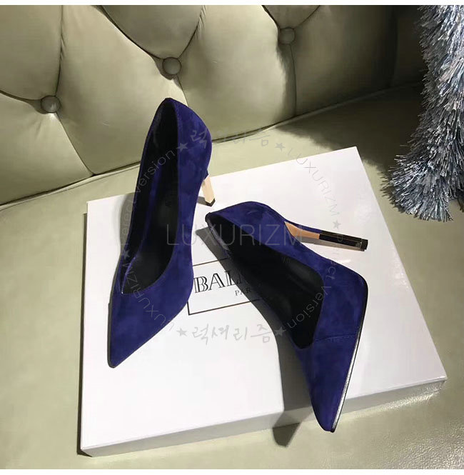 BALMAIN-W7CEV 발망 아그네스 네이비 스웨이드 가죽 펌프스 여성용