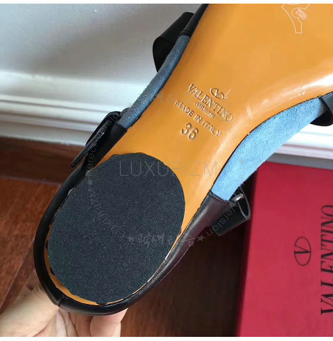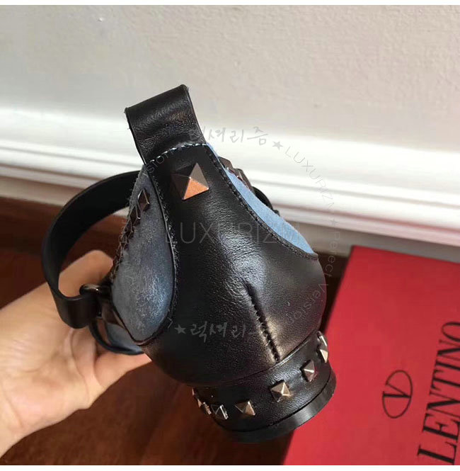 VALENTINO-NW1S0C 발렌티노 블랙 스웨이드 가죽 스트랩 앤 스터드 발레리나 플랫 슈즈 여성용