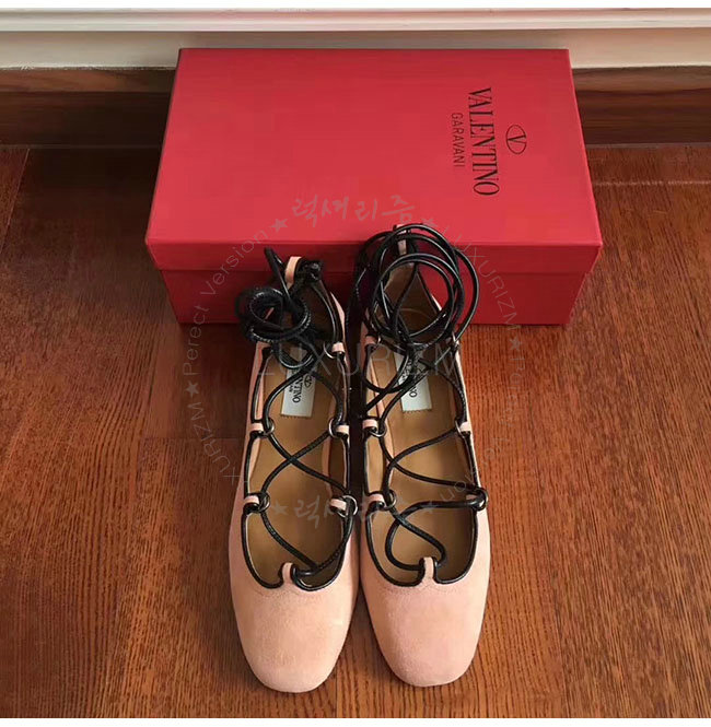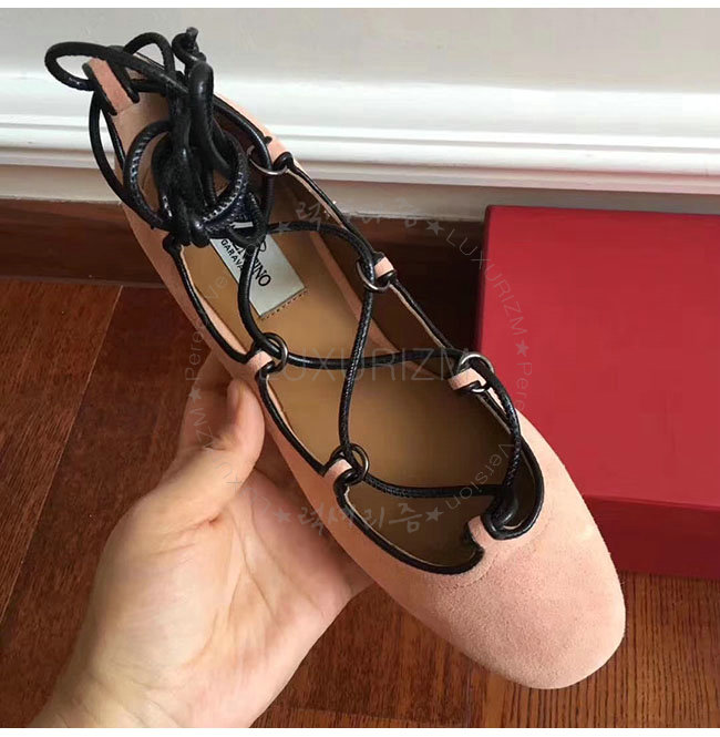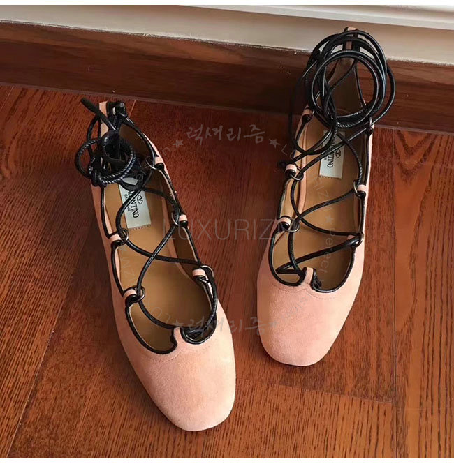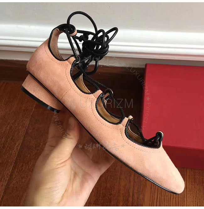 VALENTINO-NW1S0D 발렌티노 연핑크 스웨이드 양가죽 발레리나 플랫 슈즈 여성용
