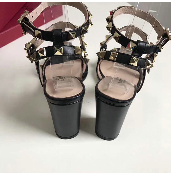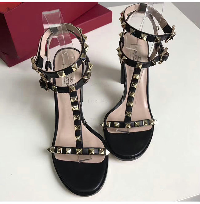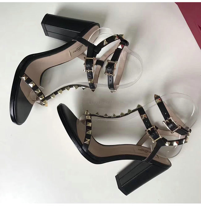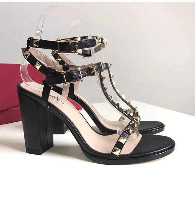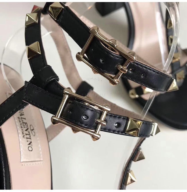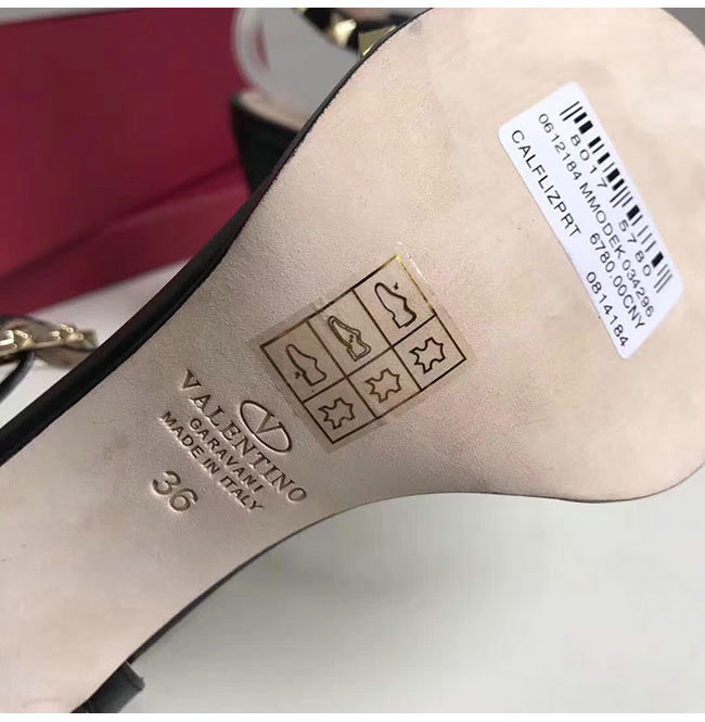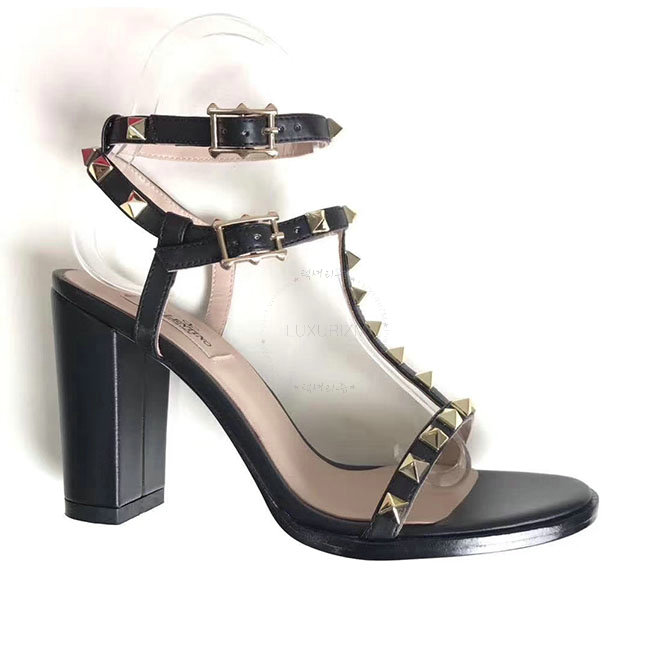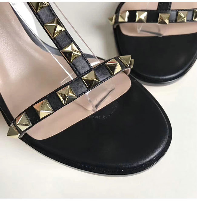 VALENTINO-PY2S07 발렌티노 블랙 카프스킨 락스터드 샌들 펌프스 여성용