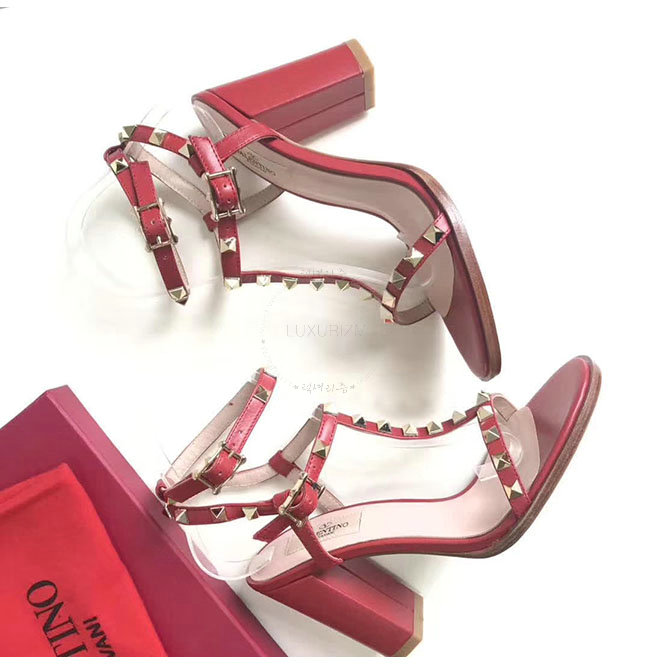 VALENTINO-PY2S07 발렌티노 레드 카프스킨 락스터드 샌들 펌프스 여성용