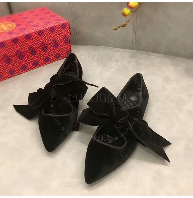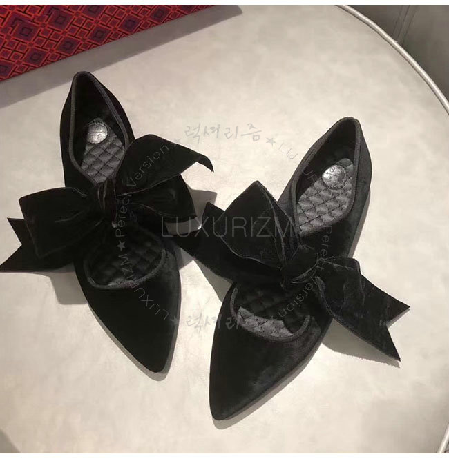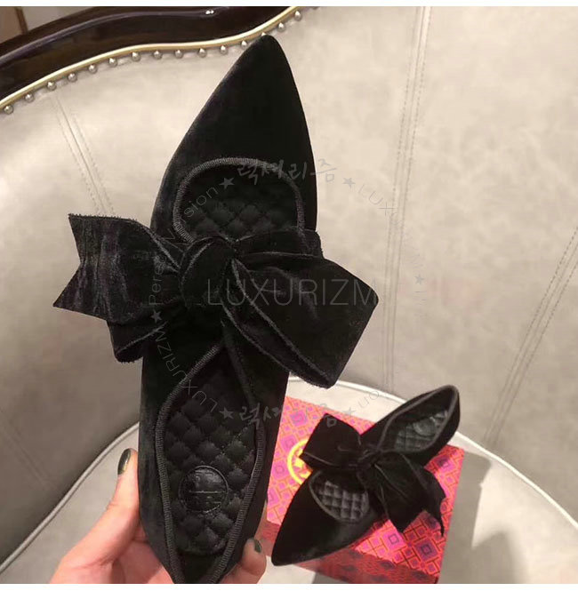 TORY BURCH-7YK2L 토리버치 블랙 벨벳 클라라 발레리나 플랫 여성용