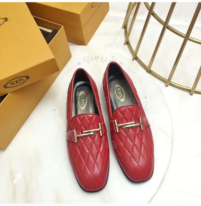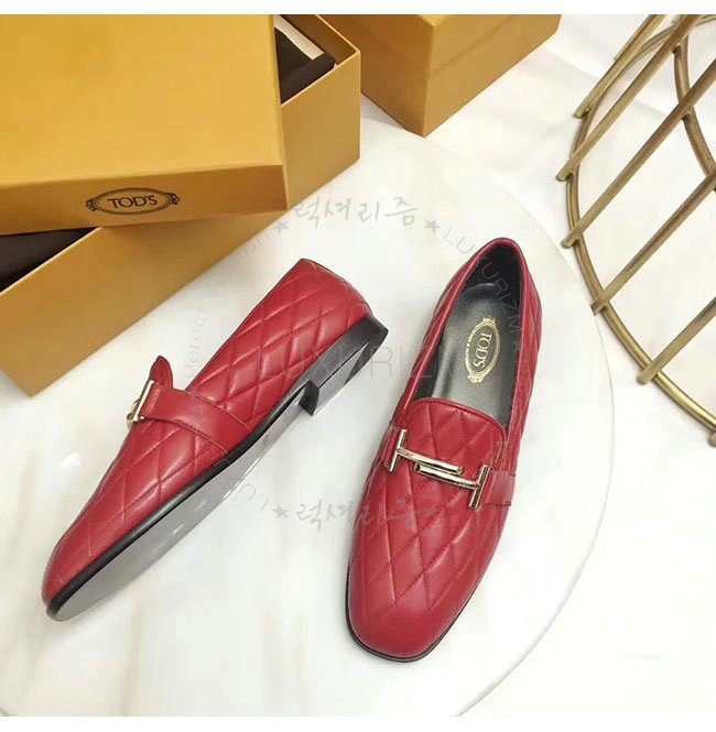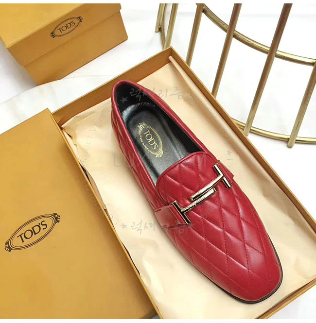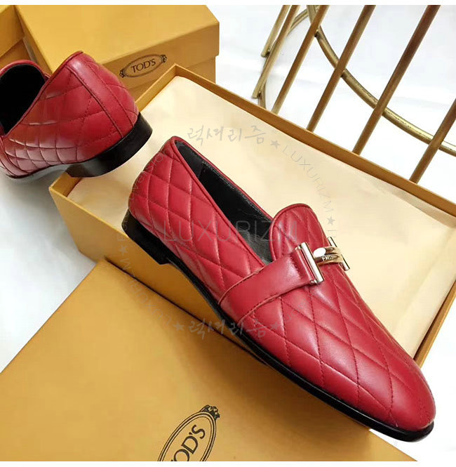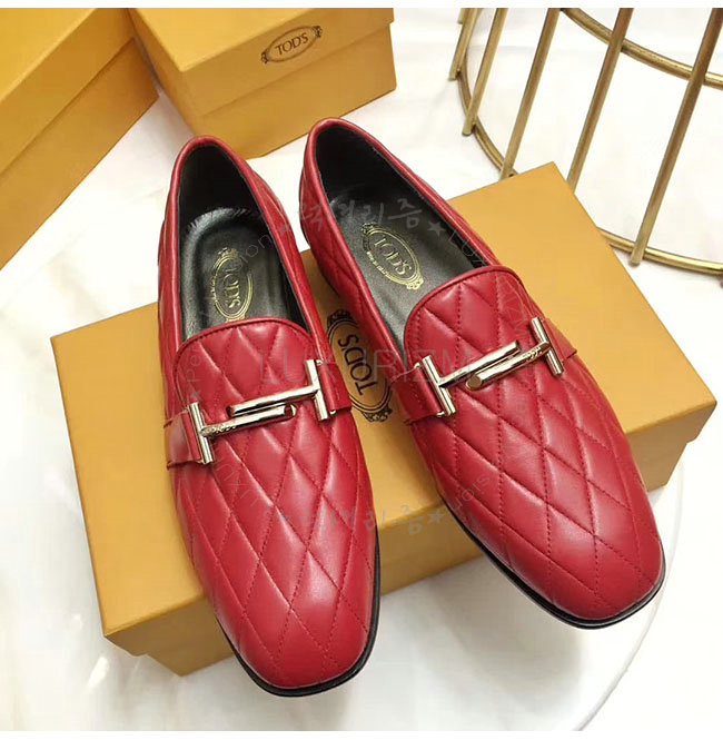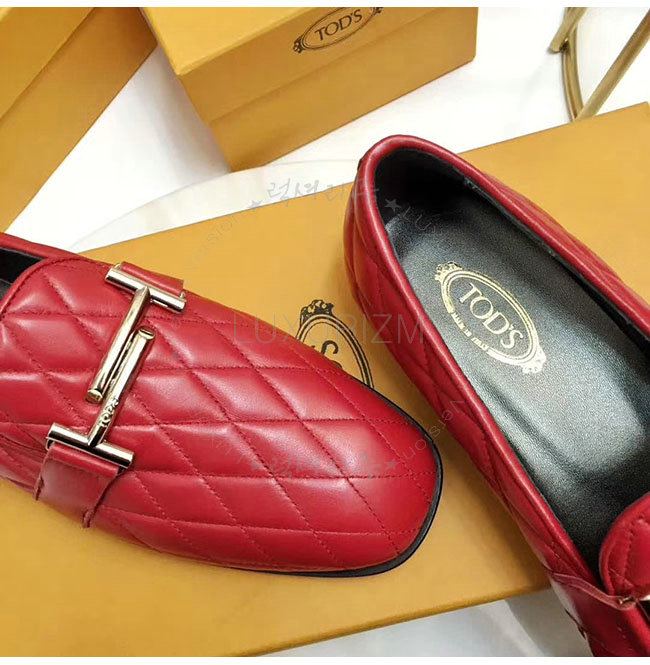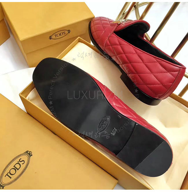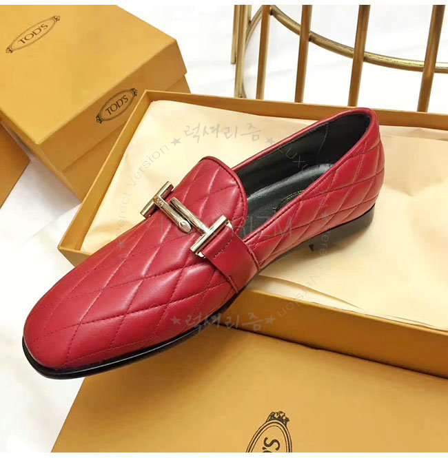 TODS-0ZZ0W230 토즈 레드 가죽 더블티 메탈 클램프 모카신 여성용