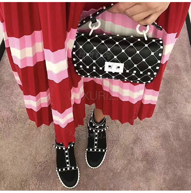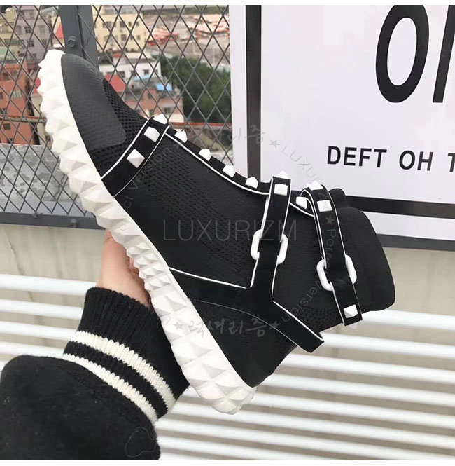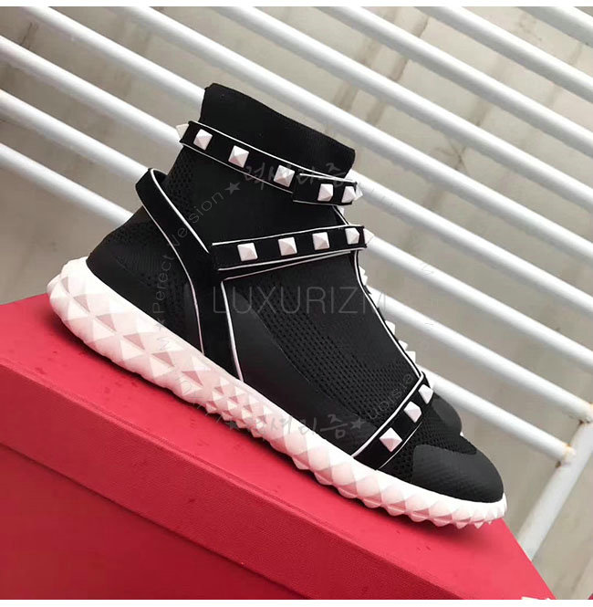 VALENTINO-2S0F81 발렌티노 블랙 니트 락스터드 스니커즈 여성용