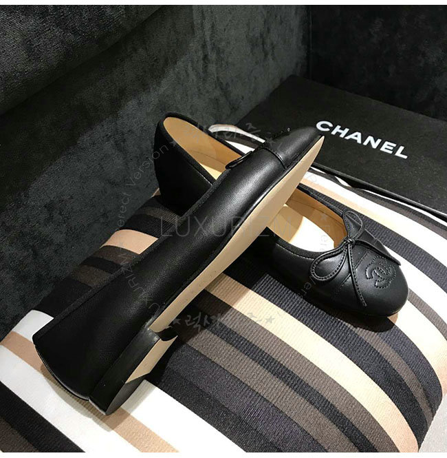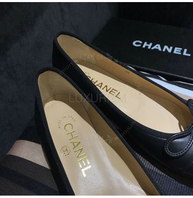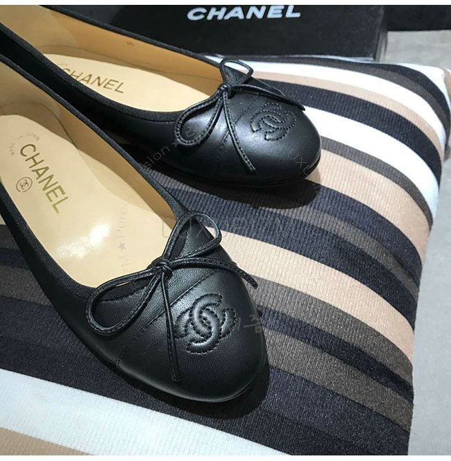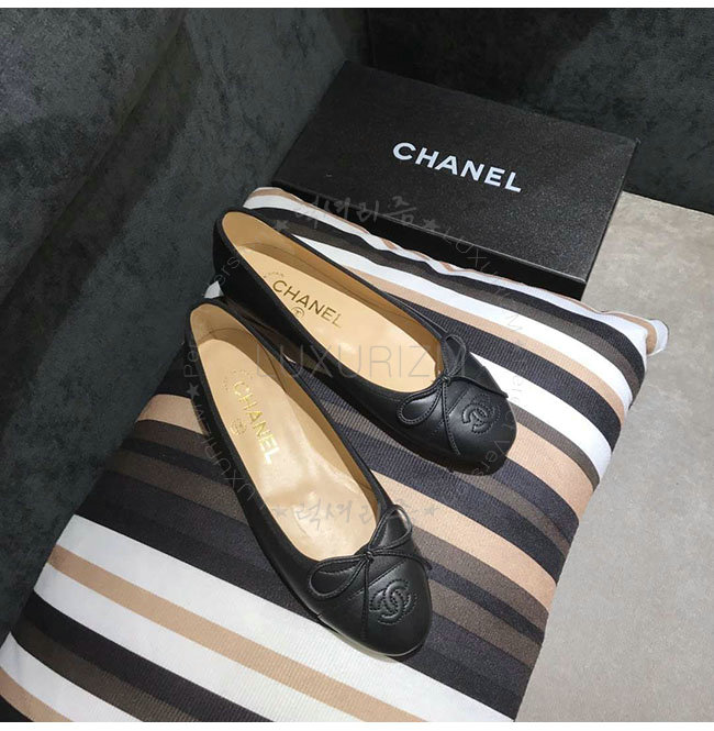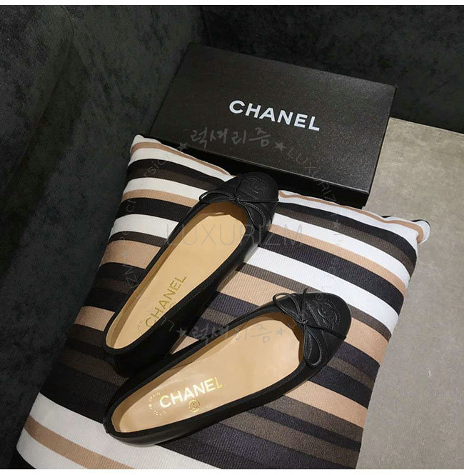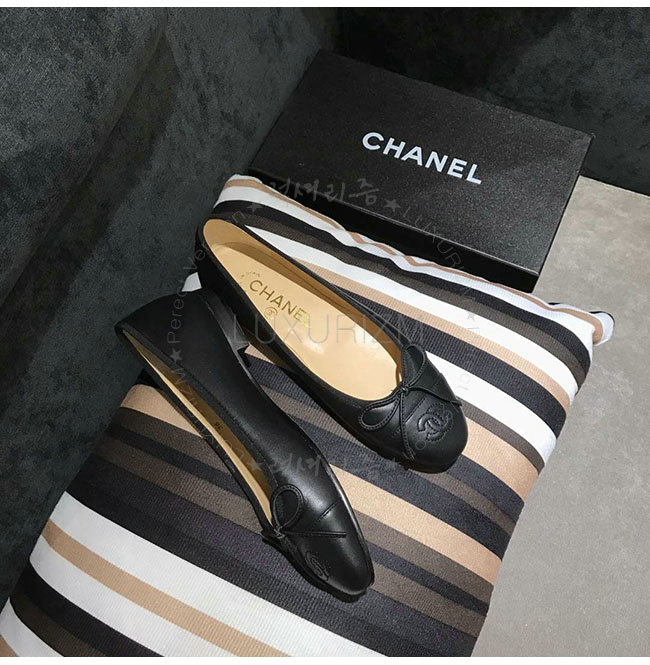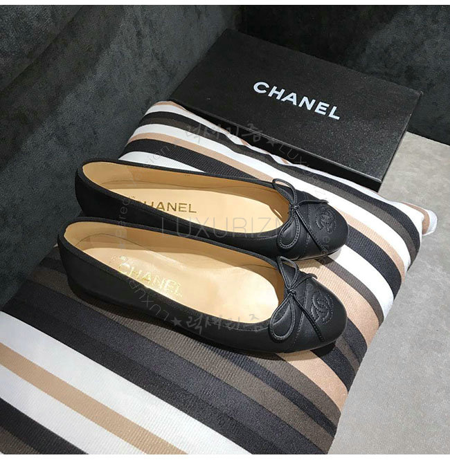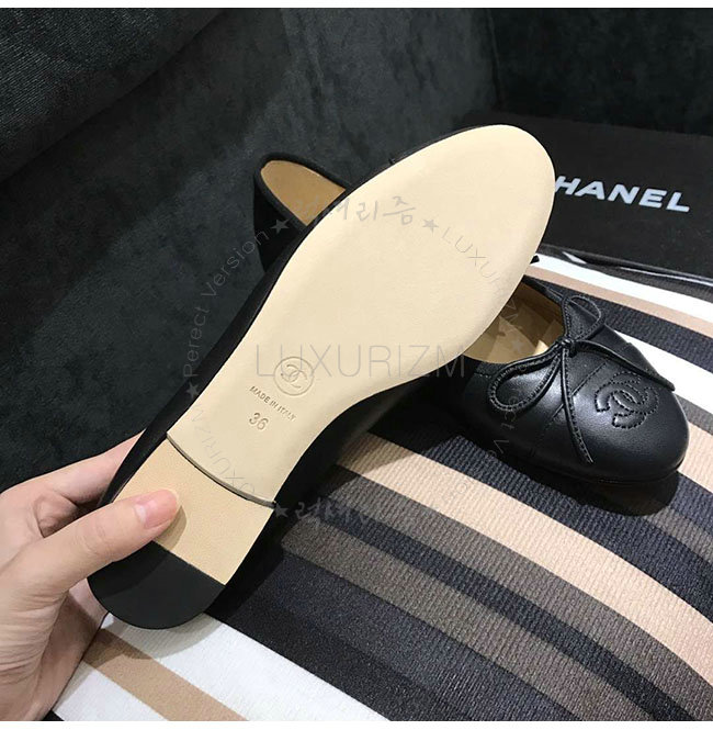 CHANEL-G02819 샤넬 블랙 그레인드 카프스킨 플랫 여성용