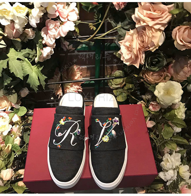 ROGER VIVIER-40321260 로저비비에 블랙 데님 스니키 블루밍 뮬 여성용