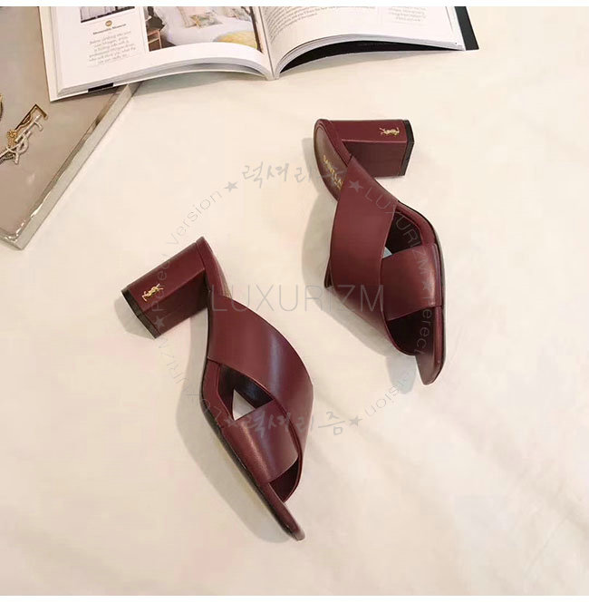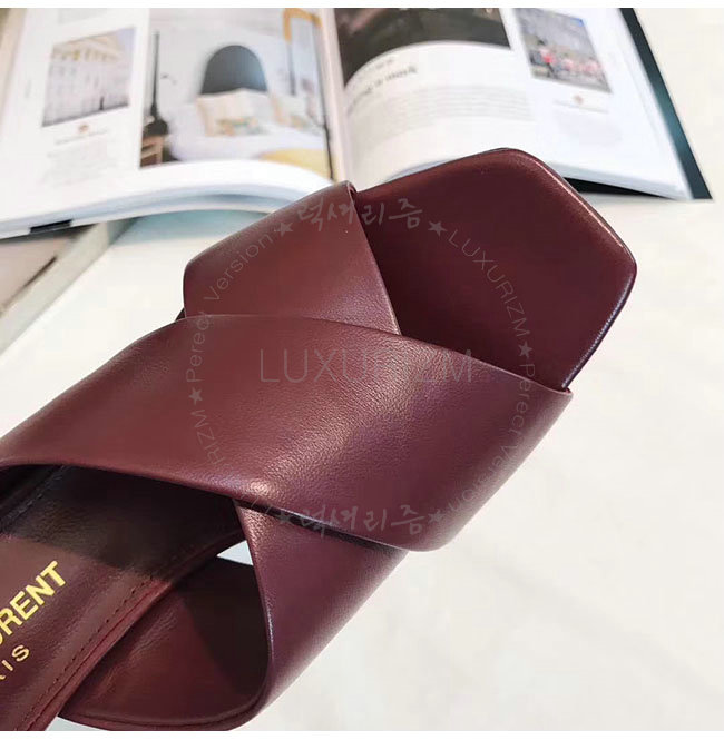 SAINT LAURENT-509357 생로랑 버건디 가죽 루루 라이드 샌들 펌프스 여성용