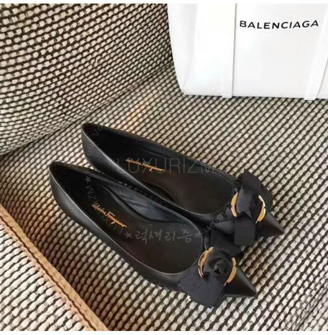 FERRAGAMO-01N263 페라가모 램스킨 작약꽃 디테일 블랙 펌프스
