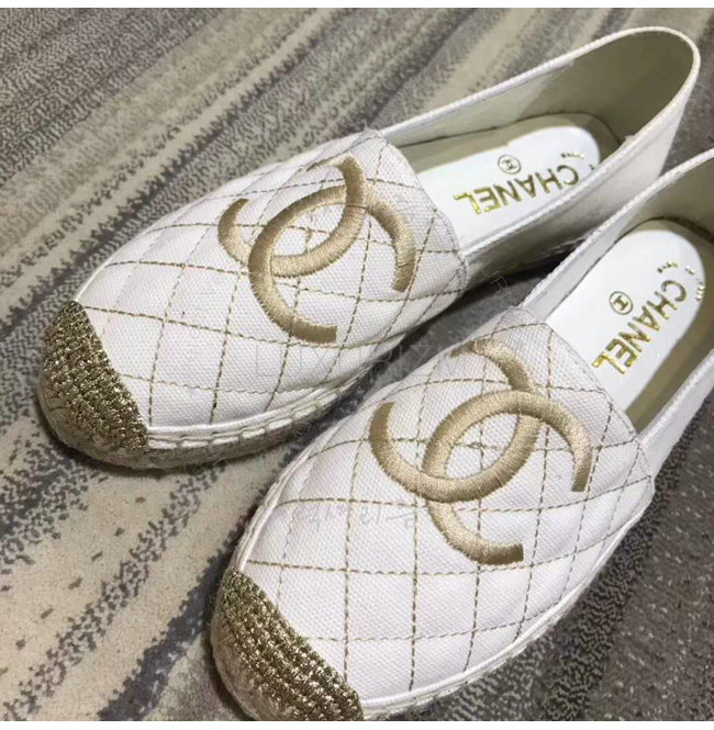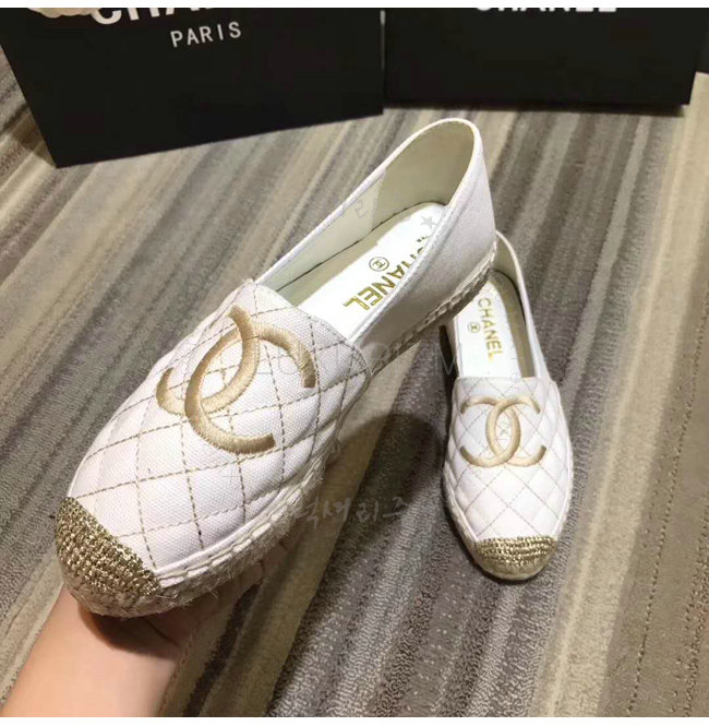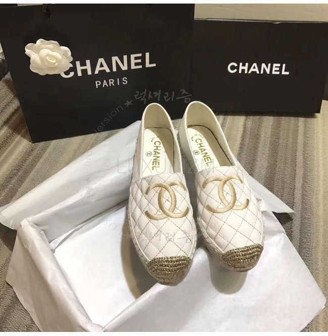 CHANEL-G32910 샤넬 페브릭 골드 화이트 에스파드리유