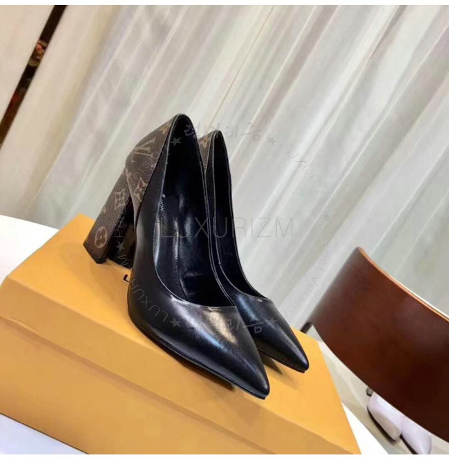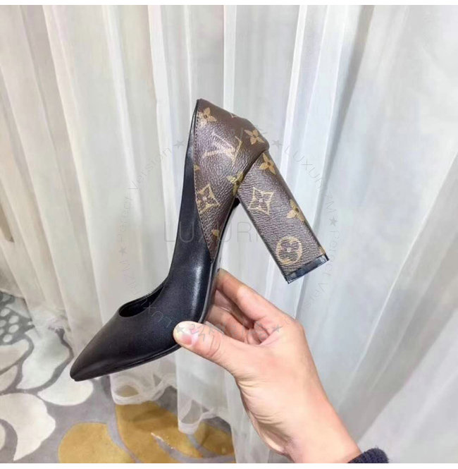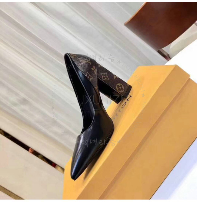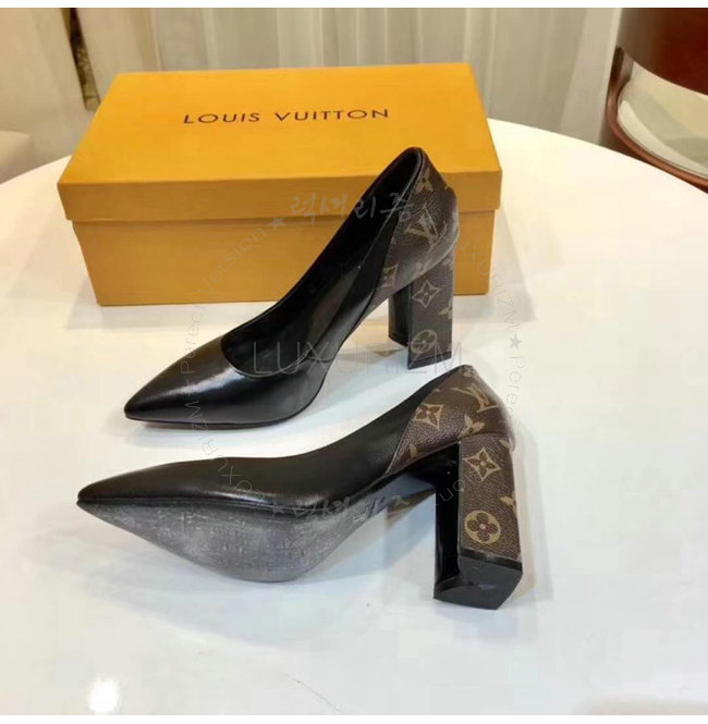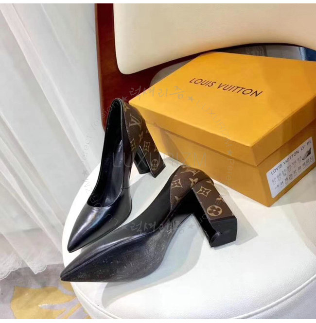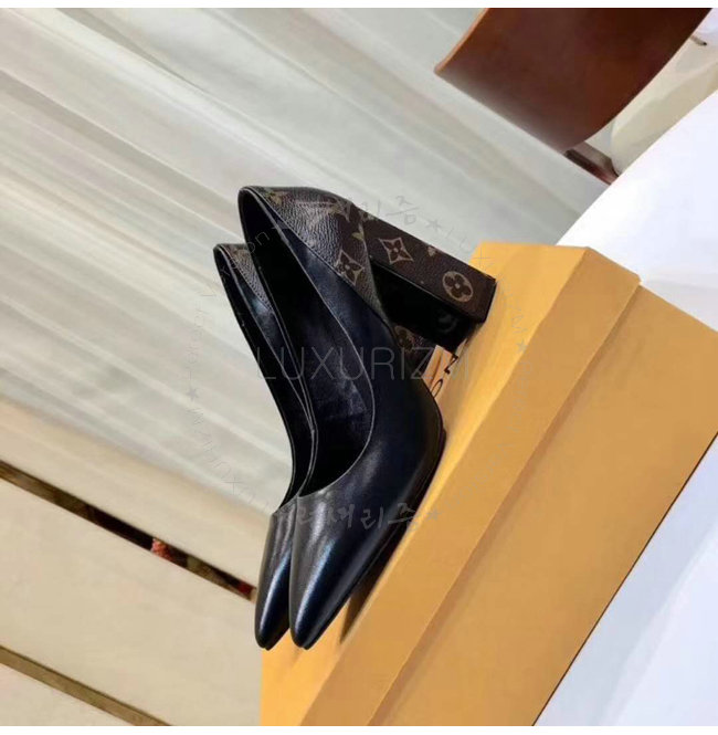 LOUIS VUITTON-1A3PR4 루이비통 플레인 송아지 가죽 모노그램 캔버스 블랙 매치메이크 펌프스