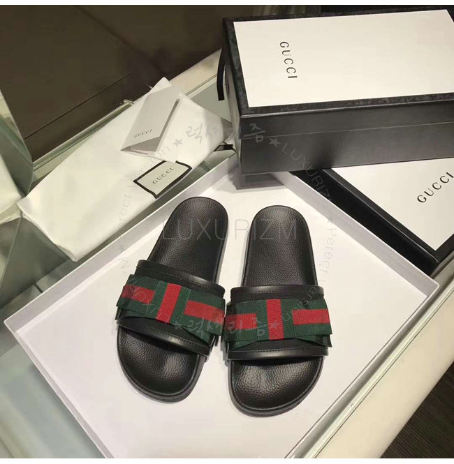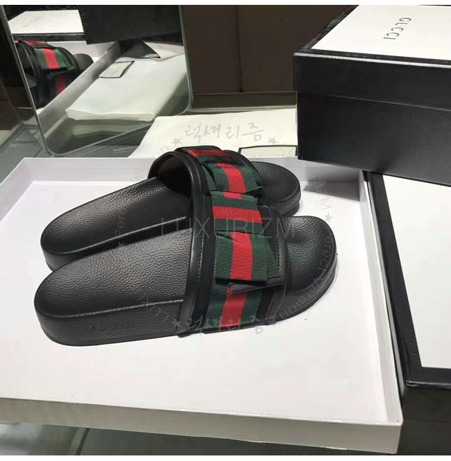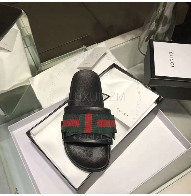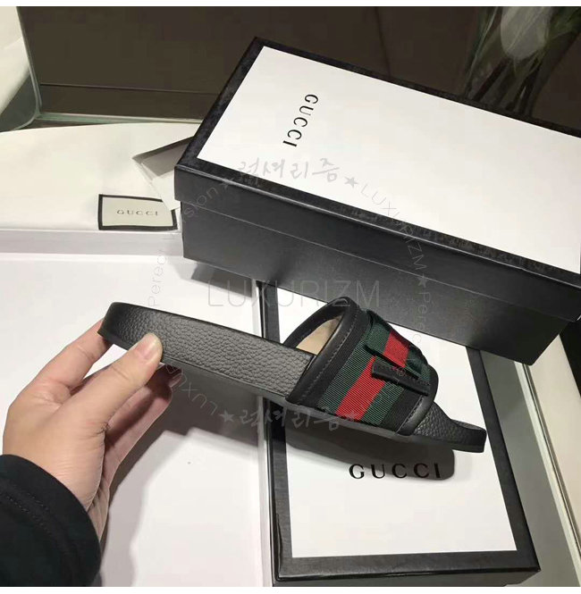 GUCCI-498316 1146 구찌 Web 보운 장식 블랙 슬라이드