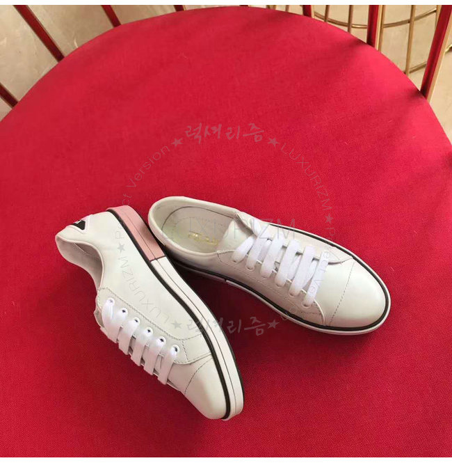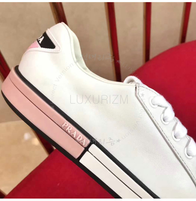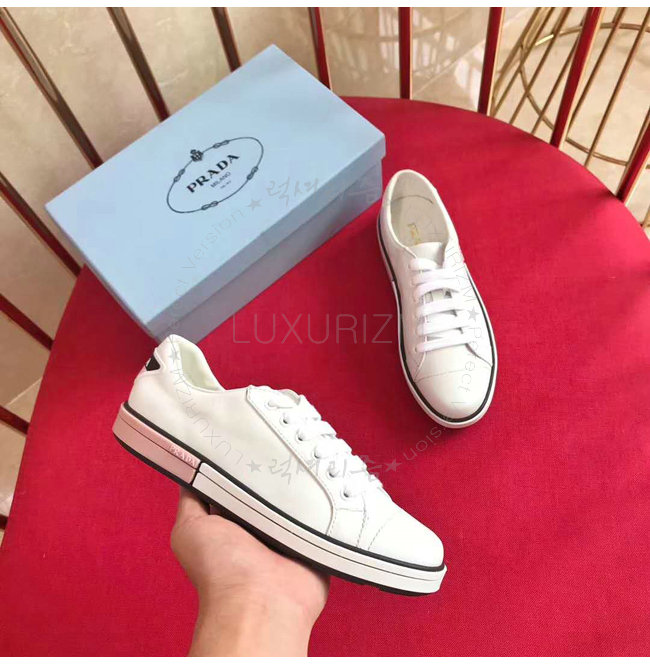PRADA-1E347I 프라다 송아지 가죽 Prada 로고 패치 화이트 스니커즈