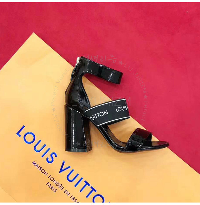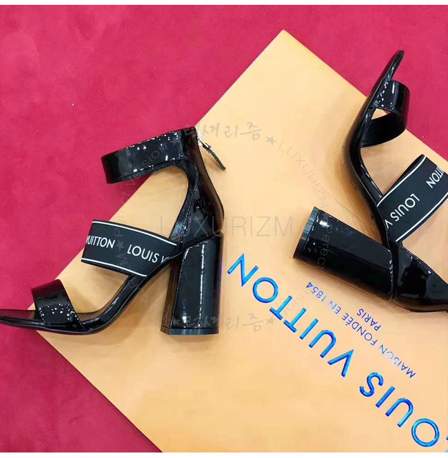 LOUIS VUITTON-1A3TAC 루이비통 페이턴트 송아지 가죽 언커버 하이힐 샌들