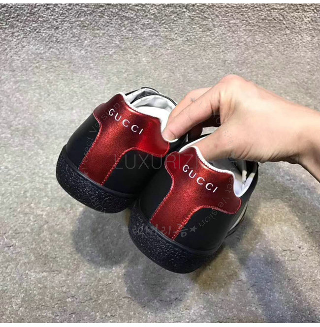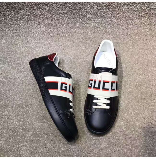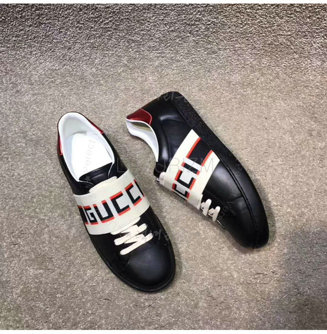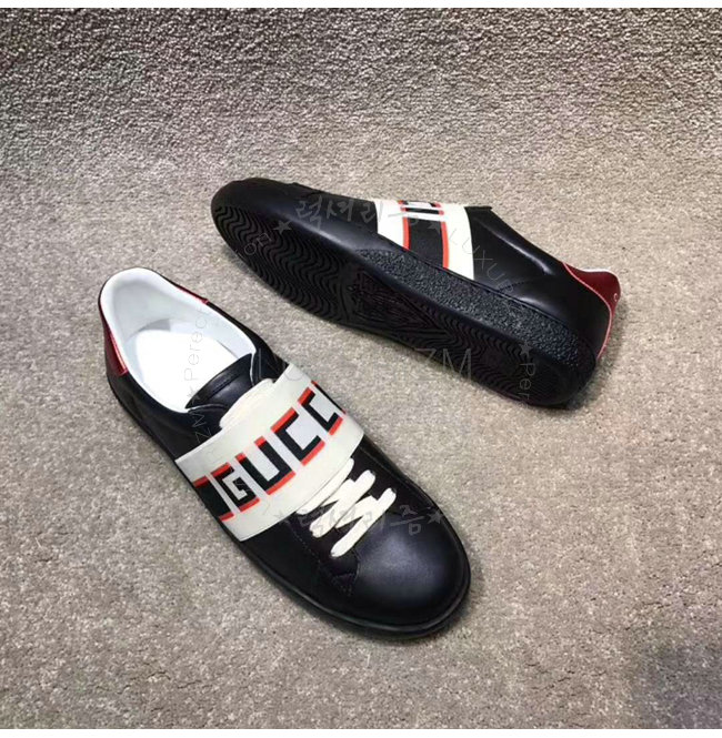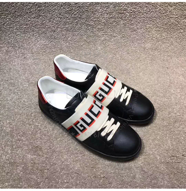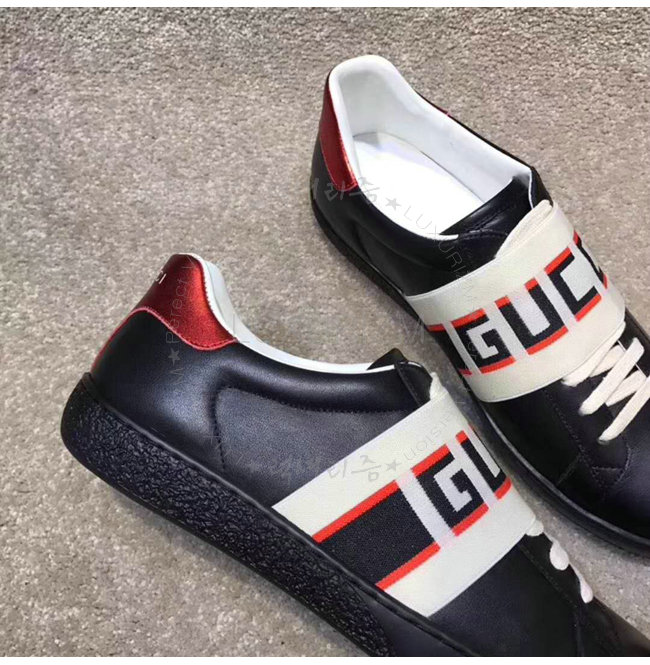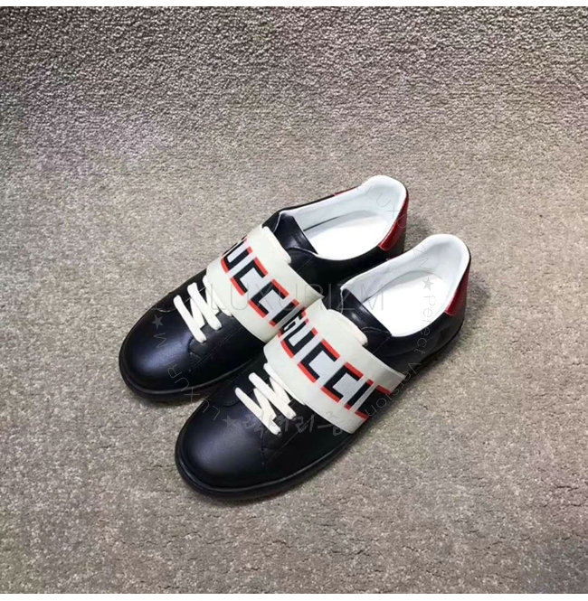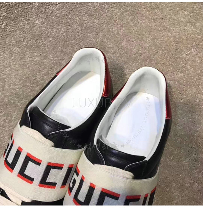 GUCCI-523469 1076 구찌 블랙 가죽 GUCCI 스트라이프 스니커즈