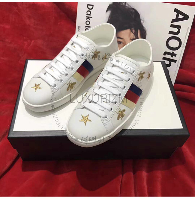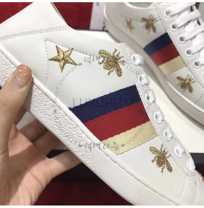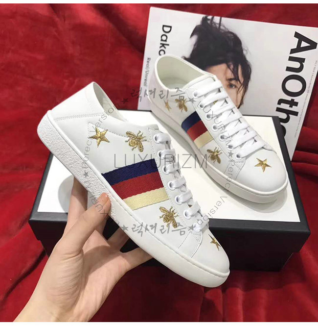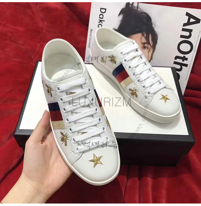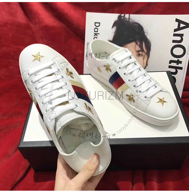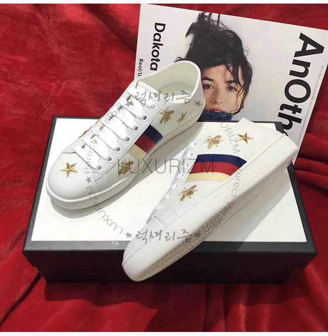 GUCCI-49820 9098 구찌 화이트 가죽 에이스 벌 별 모양 스니커즈