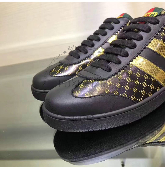 GUCCI-536853 1090 구찌 블랙 GG 가죽 Gucci-Dapper Dan 스니커즈
