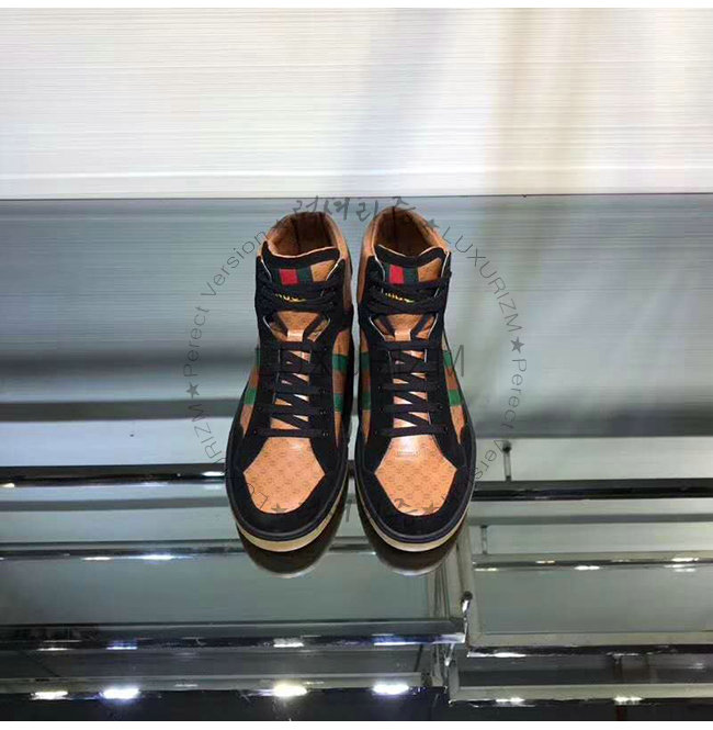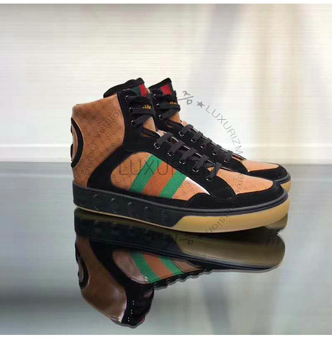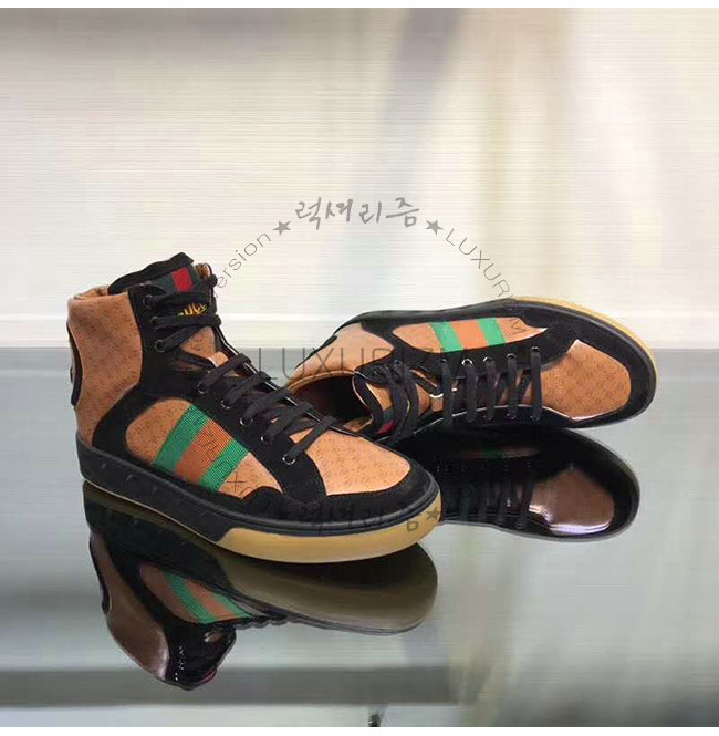 [스페셜오더]GUCCI-536839 1090 구찌 블랙 GG 가죽 Gucci Dapper Dan 하이탑 스니커즈