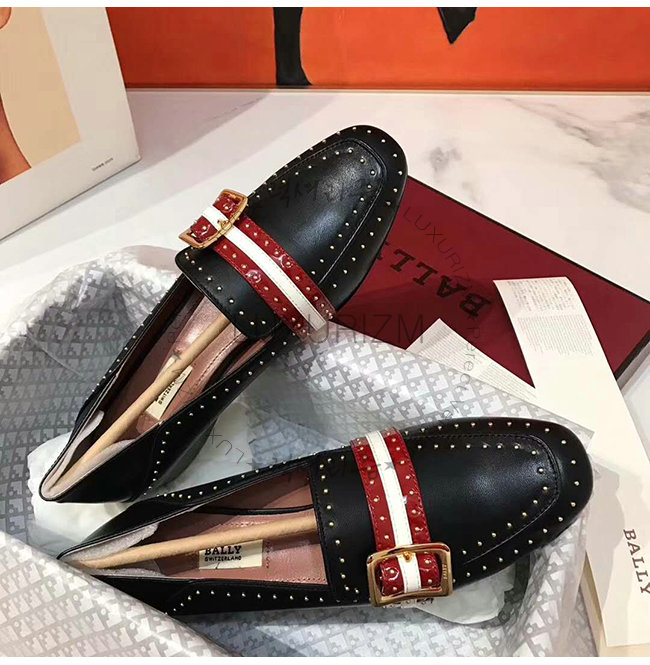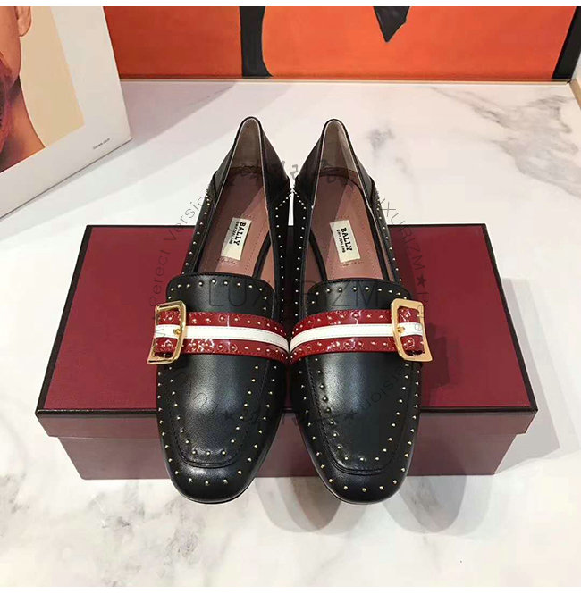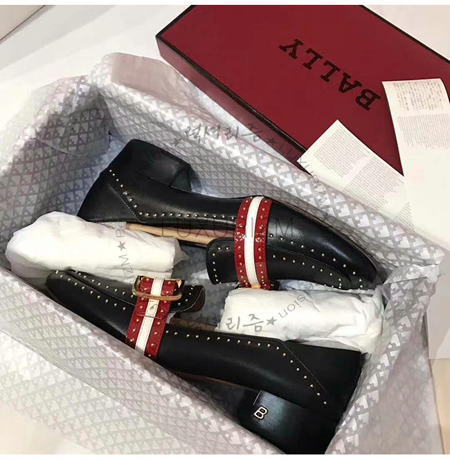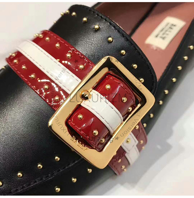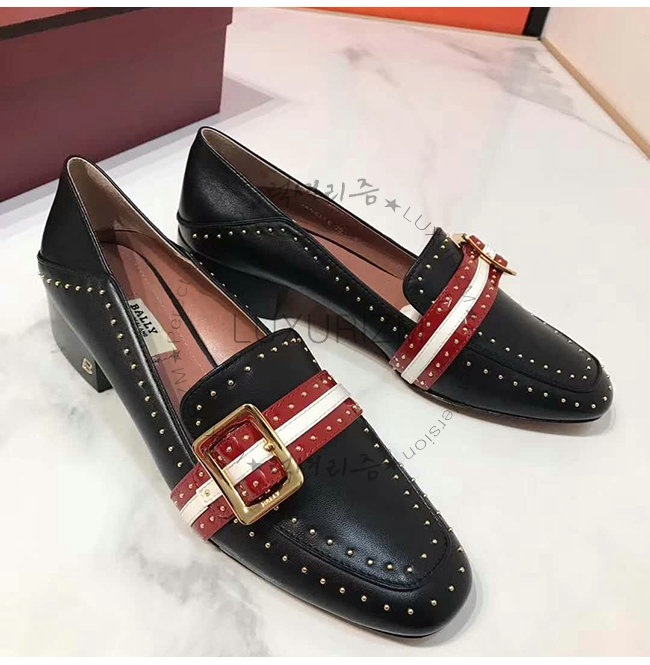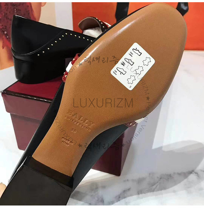 BALLY-6223338 발리 블랙 레드 카프스킨 스터드 장식 JANELLE 펌프스