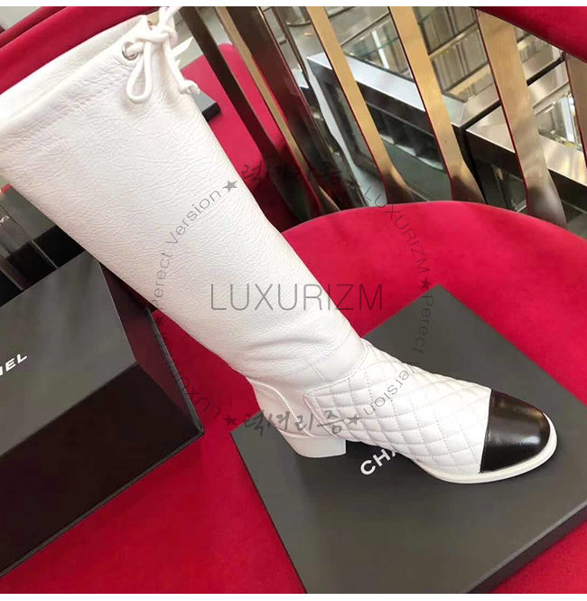 [스페셜오더]CHANEL-G34098 샤넬 화이트 카프스킨 하이 부츠