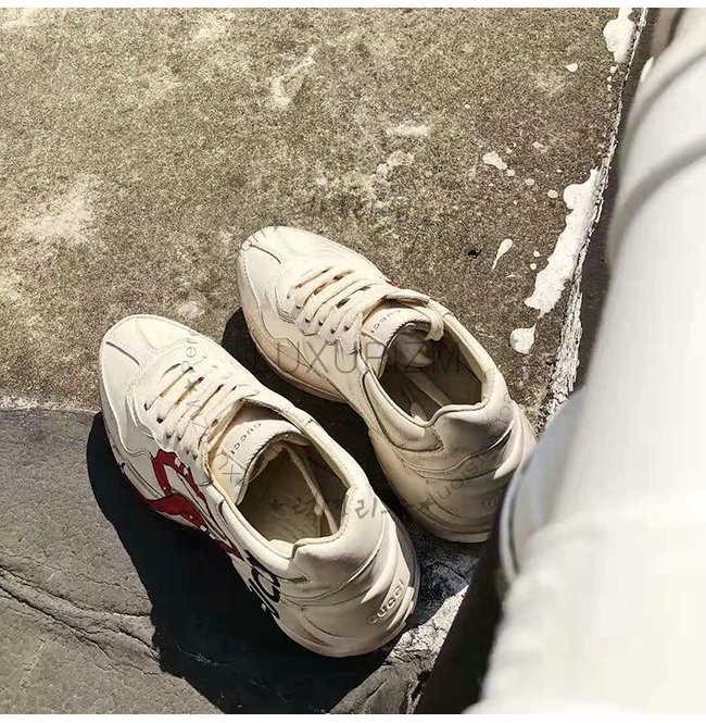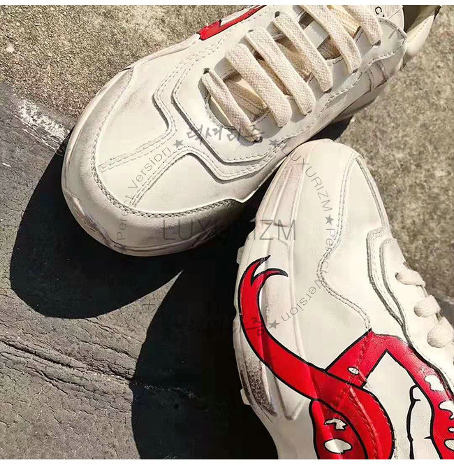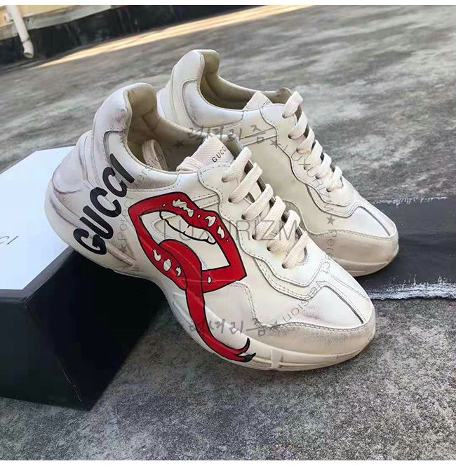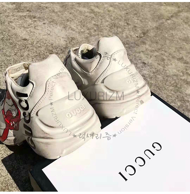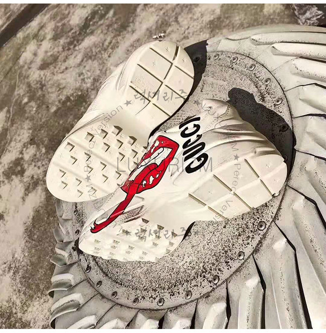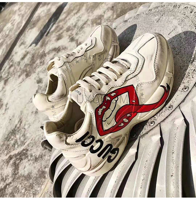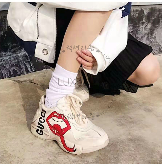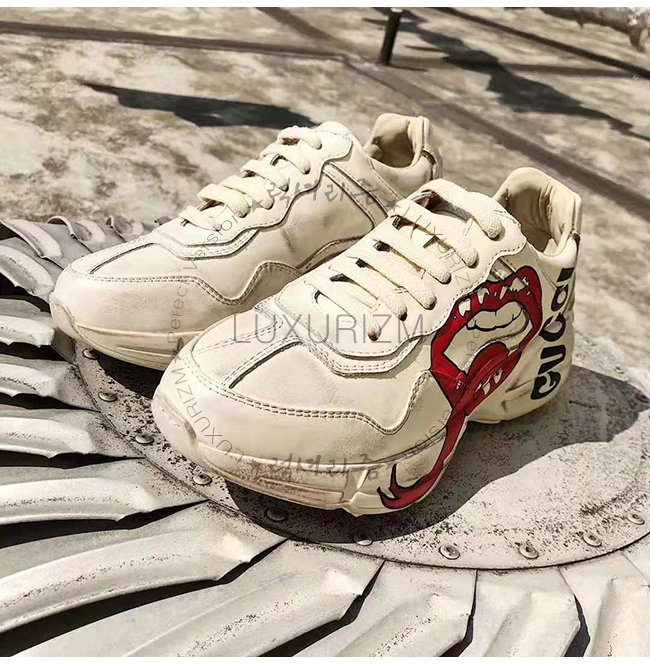 [스페셜오더]GUCCI-552093 9522 구찌 롸이톤 아이보리 가죽 입 모양 프린트 스니커즈