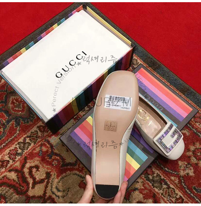 GUCCI-551434 9526 구찌 마들린 화이트 가죽 크리스털 G 디테일 발레 플랫