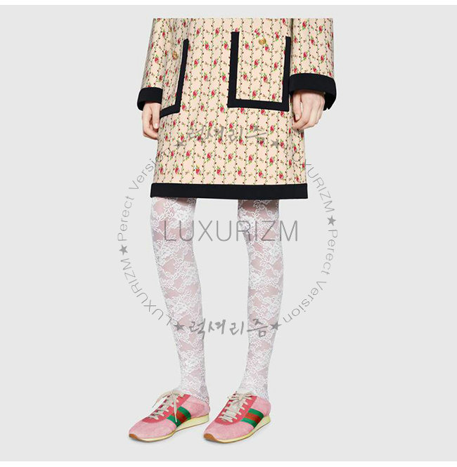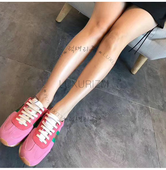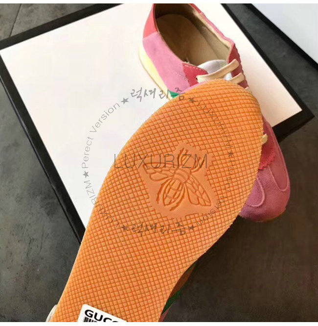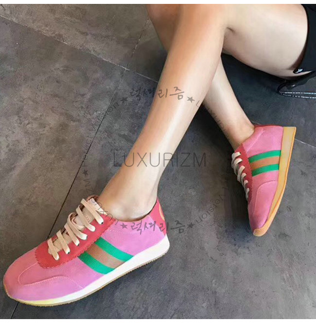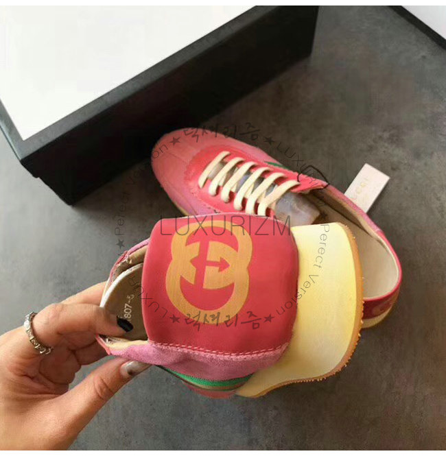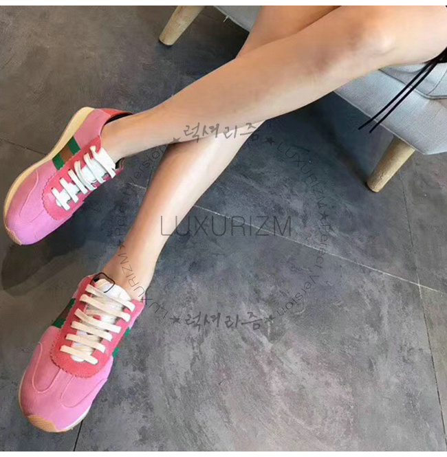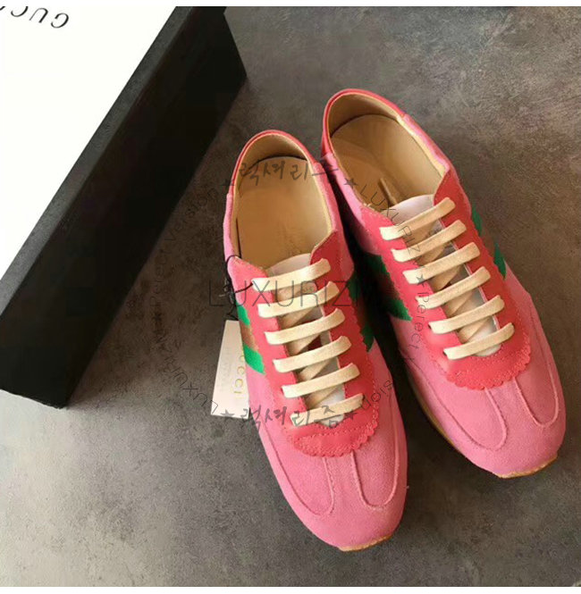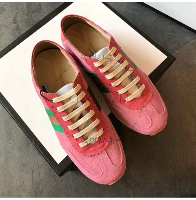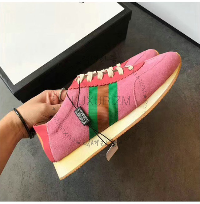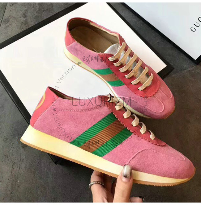 GUCCI-537049 6660 구찌 핑크 스웨이드 가죽 웹 디테일 스니커즈