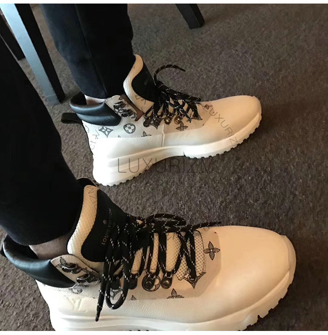 LOUIS VUITTON-1A49GX 루이비통 화이트 송아지 가죽 모노그램 트리밍 LV 캐니언 스니커 부츠
