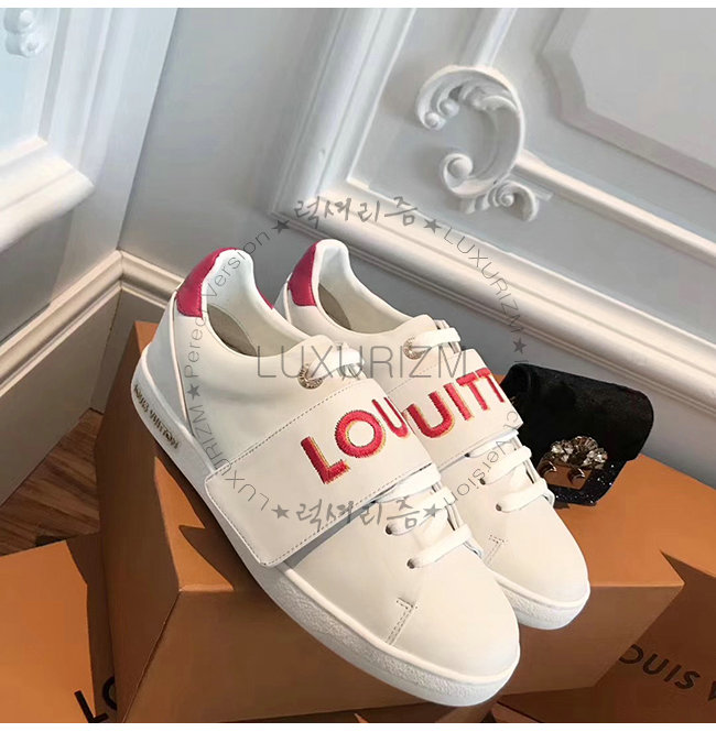 LOUIS VUITTON-1A4VSG 루이비통 화이트 송아지 가죽 화이트 벨크로 스트랩 프런트로우 스니커즈
