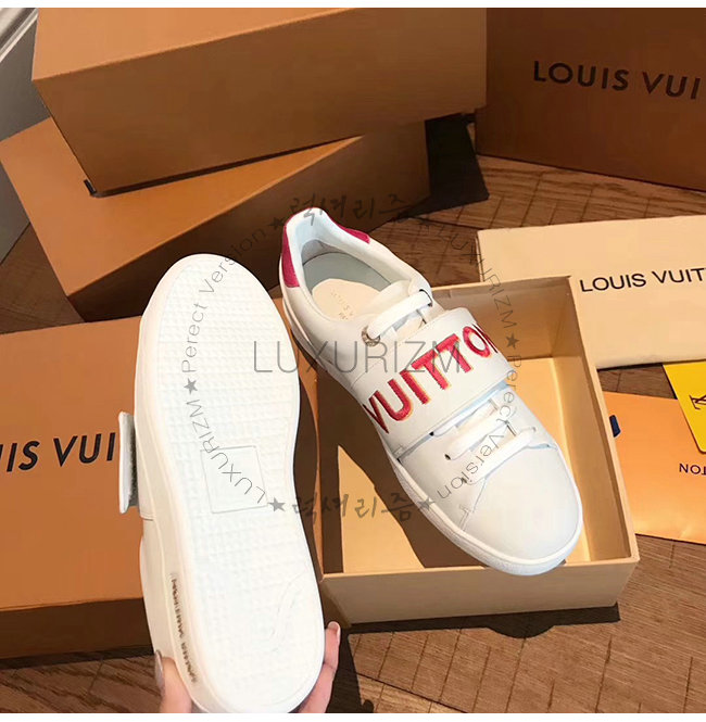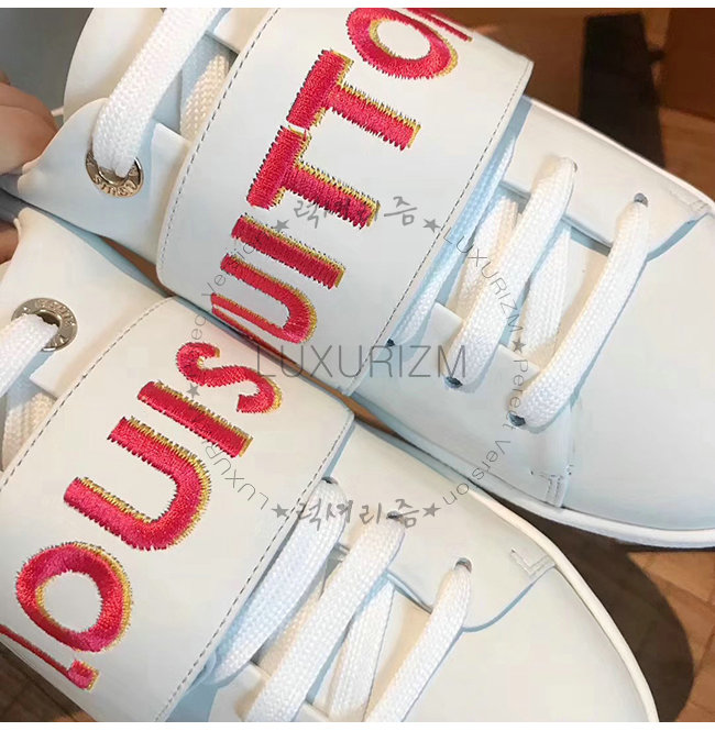 LOUIS VUITTON-1A4FSW 루이비통 화이트 송아지 가죽 화이트 벨크로 스트랩 LV 메탈 장식 프런트로우 스니커즈