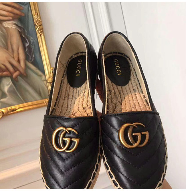 GUCCI-551890 1000 구찌 블랙 마틀라세 가죽 더블 G 에스파드류